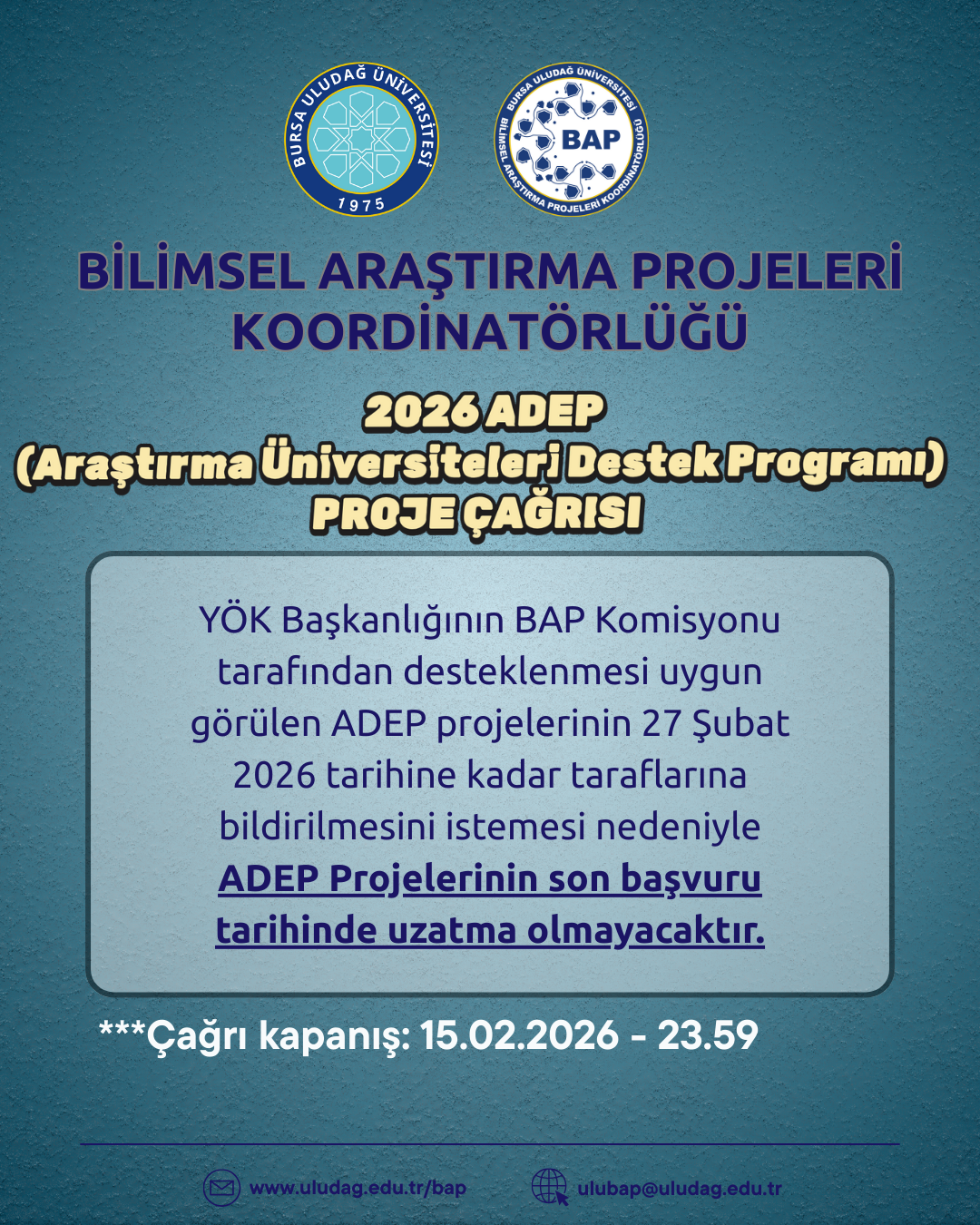 ARAŞTIRMA ÜNİVERSİTELERİ DESTEK PROGRAMI (ADEP ) SON BAŞVURU TARİHİ HK.