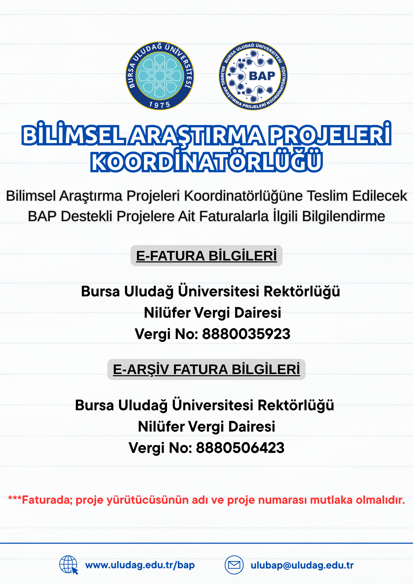 Bilimsel Araştırma Projeleri Koordinatörlüğüne Teslim Edilecek BAP Destekli Projelere Ait Faturalarla İlgili Bilgilendirme