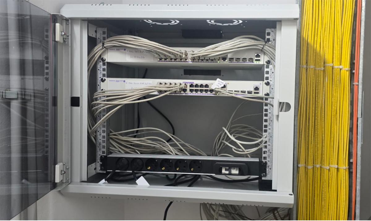 Toplamda birbirinden bağımsız 7 ayrı bloktan oluşan yapıda 1 ana sistem odası ve 23 kat sistem odaları içerisinde konumlandırılan kaliteli güncel marka ve model anahtarlama cihazlarının fiberoptik ve CAT kablolama bağlantıları gerçekleştirilmiş, gerekli konfigürasyonları yapılarak montajları tamamlanmıştır. Kullanılan anahtarlama cihazları Layer 3 yönetilebilir özellikte olup, binadaki tüm alt ağlar için yönlendirme, trafik yönetimi ve erişim denetimi özelliklerini desteklemektedir. Yerinde yapılan testler neticesinde binadaki tüm idari ve akademik personel odalarına, dersliklere ve laboratuvarlara kablolu internetin sağlıklı bir şekilde ulaştığı doğrulanmıştır.