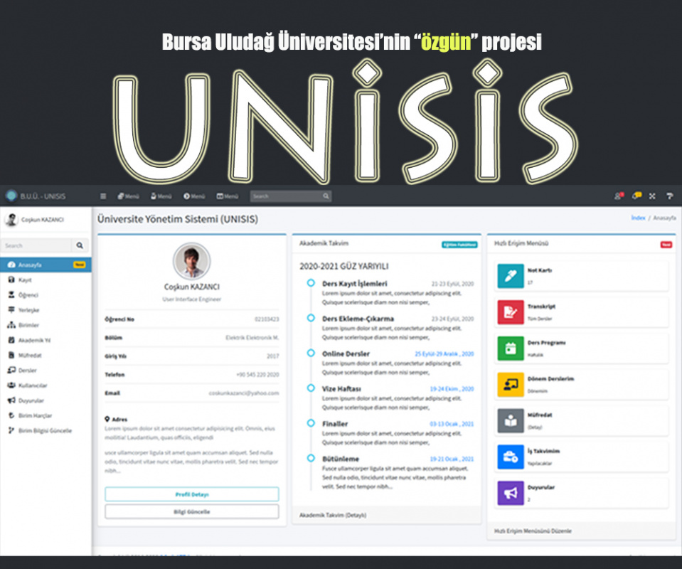 Bursa Uludag Üniversitesi’nde tüm ihtiyaçlari karsilayabilen, taleplere göre gelistirilip güncellenebilen bir yönetim bilgi sistemi kurulmasi konusunda çalismalar pandemi kosullarina ragmen hizla devam ediyor.