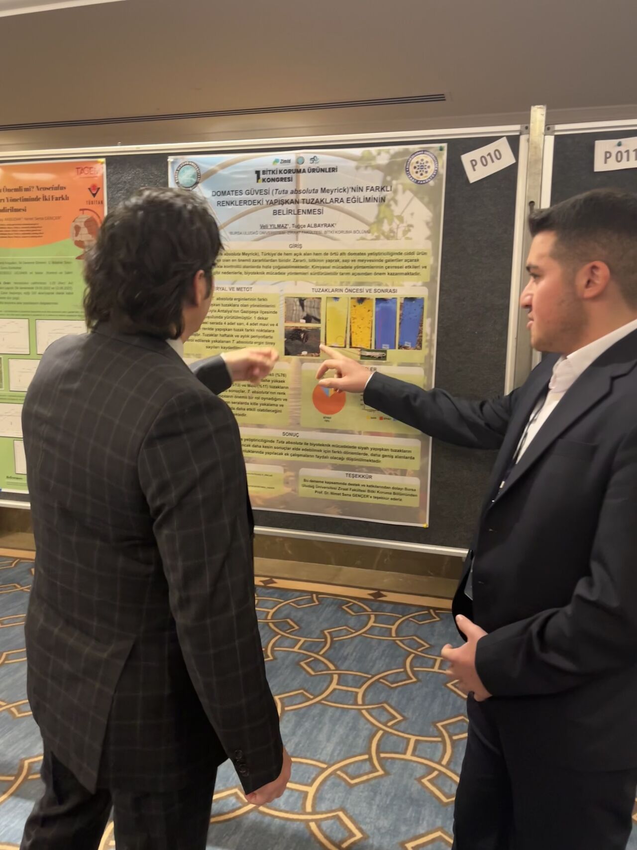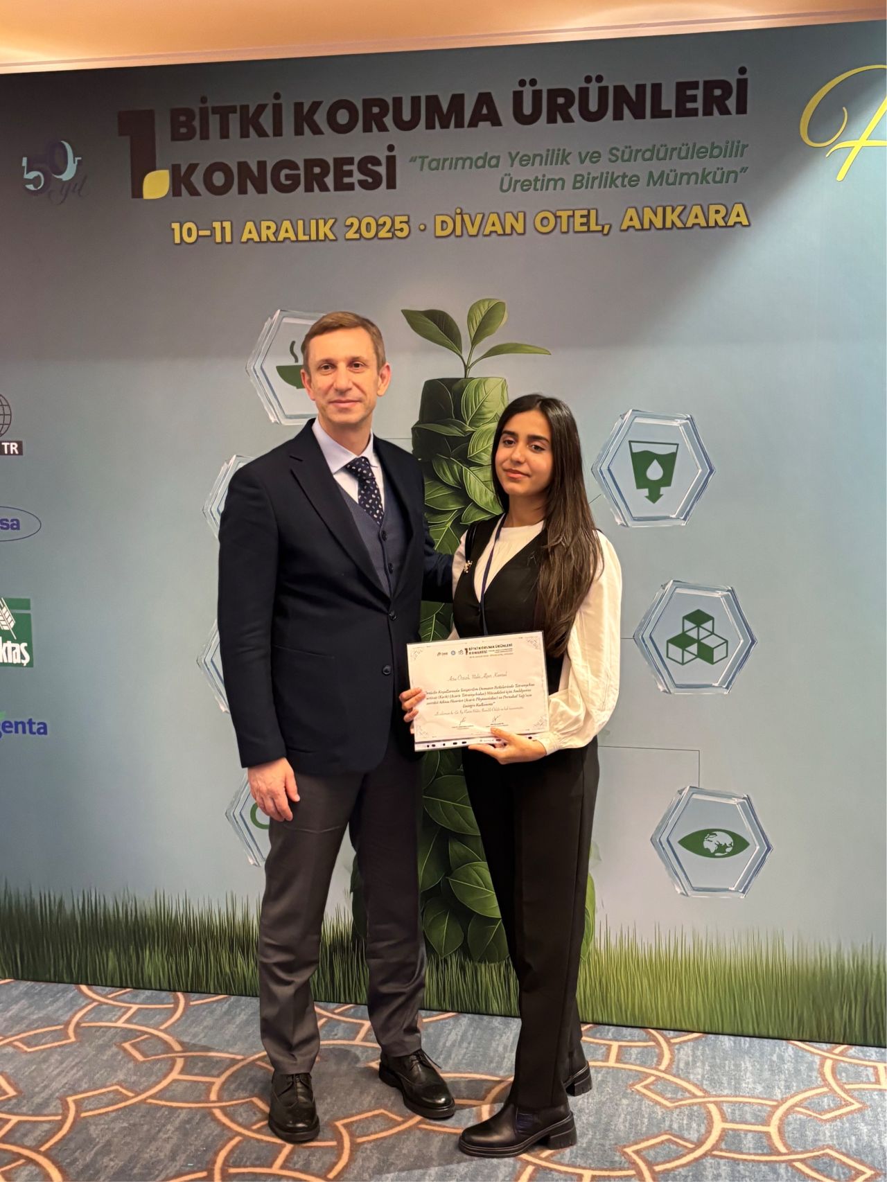 1. Bitki Koruma Ürünleri Kongresi, Bölümümüz öğretim üyesi Prof. Dr. N. Alper Kumral başkanlığında, ZİMİD ve Bursa Uludağ Üniversitresi iş birliğiyle 10-11 Aralık tarihlerinde Ankara'da yoğun bir katılımla gerçekleştirildi. “Tarımda Yenilik ve Sürdürülebilir Üretim Birlikte Mümkün” başlığı altında gerçekleştirilen kongreye bölümümüz öğrencilerinden Azra ÖZTÜRK, Bilge Nur ALAN (TÜBİTAK 2209 proje çıktılarıyla), Merve YILDIRIM, Tuğçe ALBAYRAK, Veli YILMAZ, Mustafa KORU, Eren YILDIRIM, Hacer YÜCEL, Tuana KÖYLÜ katılım sağlamıştır. Kongre Poster Yarışmasında ise bölümümüz öğrencilerinden Azra ÖZTÜRK, Prof. Dr. N. Alper Kumral danışmanlığında gerçekleştirilen TÜBİTAK 2209 proje çıktısı olan "Örtüaltı koşullarında yetiştirilen domates bitkilerinde Tetranychus urticae (Koch) (Acari: Tetranychidae) mücadelesi için Amblyseus swirskii Antias Henriot (Acari: Phytoseiidae) ve Protakal Yağının Entegre Kullanımı" başlıklı çalışması ile 2. olmuştur.