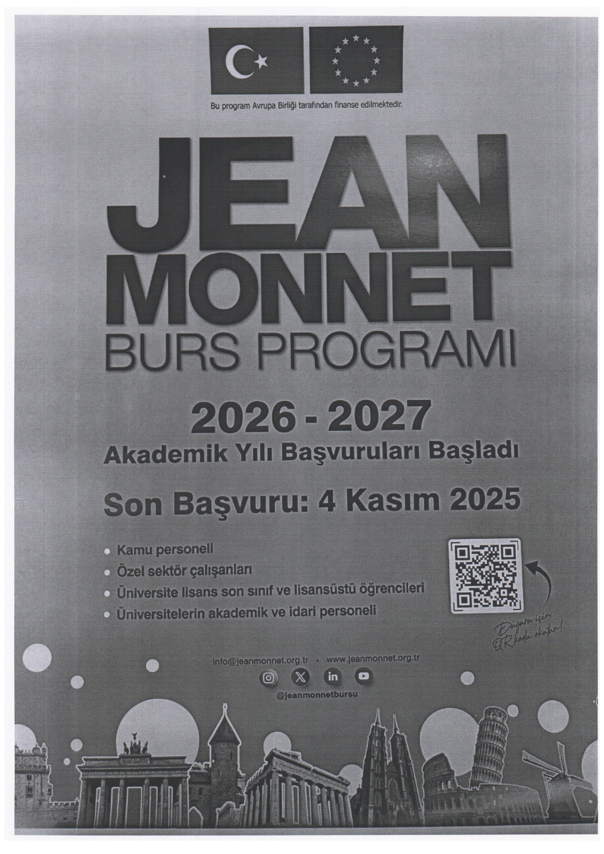 finanse edilen Jean Monnet Burs Programının 2026-2027 akademik yılı duyurusu 4 Eylül 2025 tarihinde