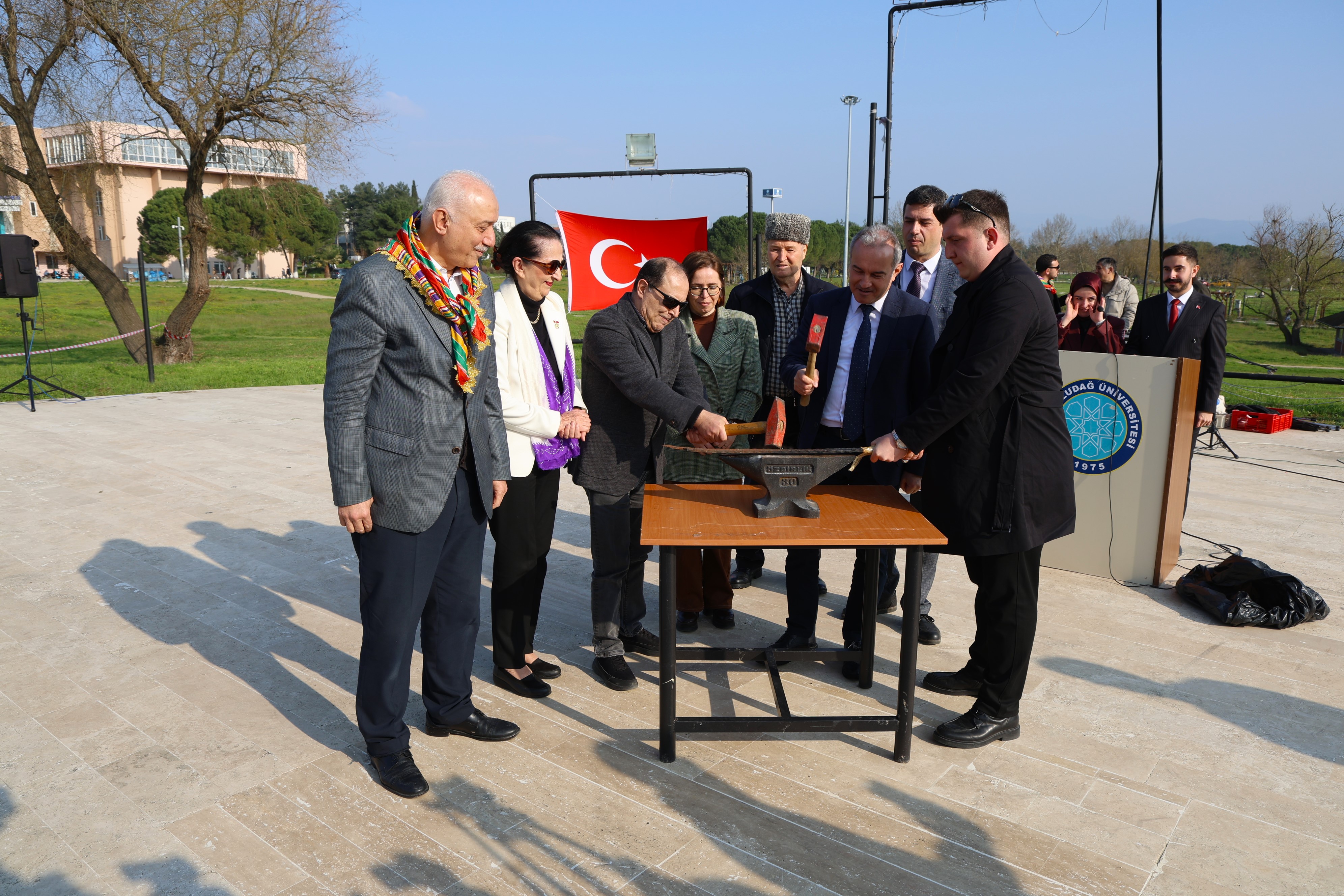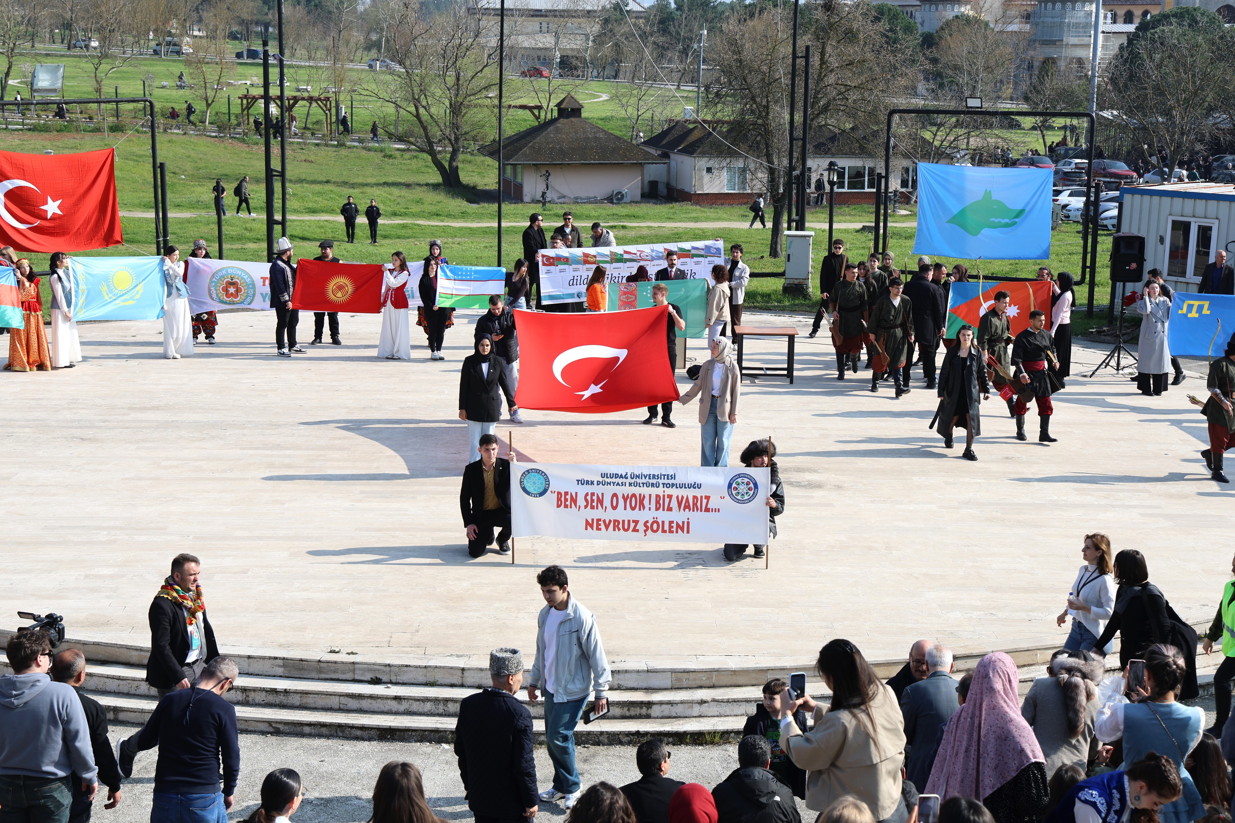 BUÜ Türk Devletleri ve Akraba Toplulukları Uygulama ve Araştırma Merkezi’nin (TÜDAM) organize ettiği ve Türk Ocağı Bursa Şubesi ile Yörük Türkmen Birliği’nin de destek verdiği etkinlik, Görükle Kampüsü’ndeki Atatürk Anıtı’nda başladı. Açılış töreninin ardından katılımcılar Mehter ekibinin öncülük ettiği kortejle programın düzenleneceği alana geldi. Etkinlikte BUÜ Rektör Yardımcısı Prof. Dr. Cafer Çiftçi, Türk Ocağı Bursa Şubesi Başkanı Prof. Dr. Selçuk Kırlı ve TÜDAM Müdürü Prof. Dr. Ferhat Kurtulmuş da hazır bulundu.