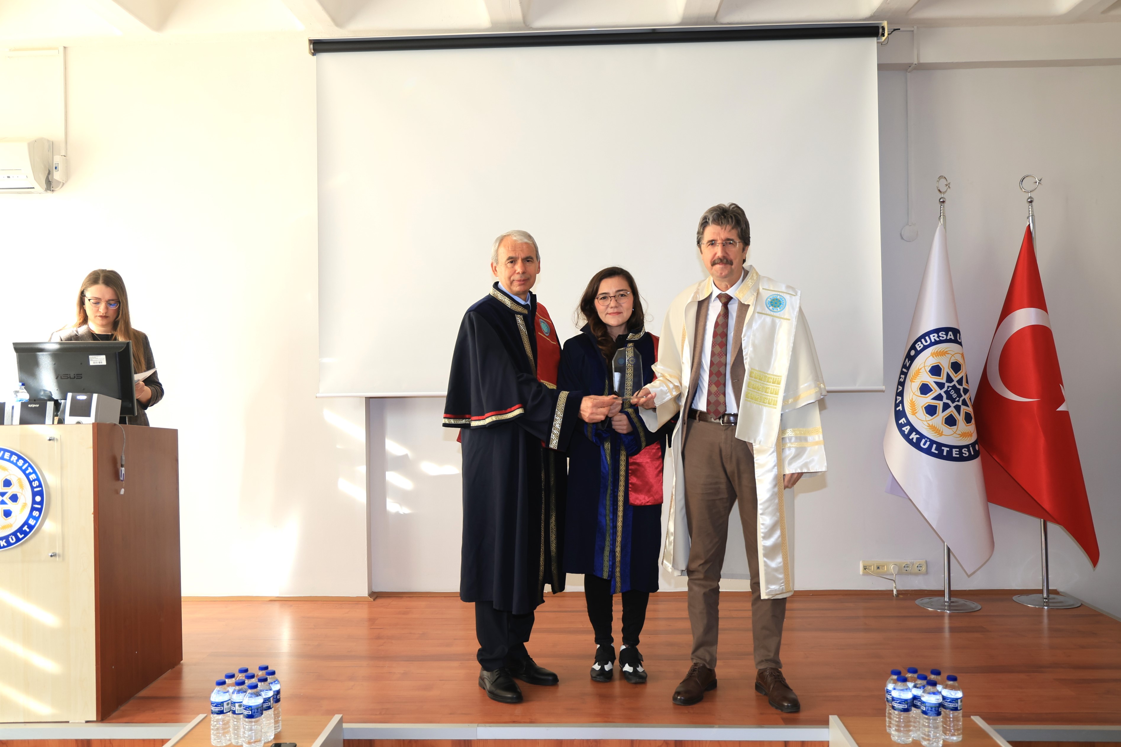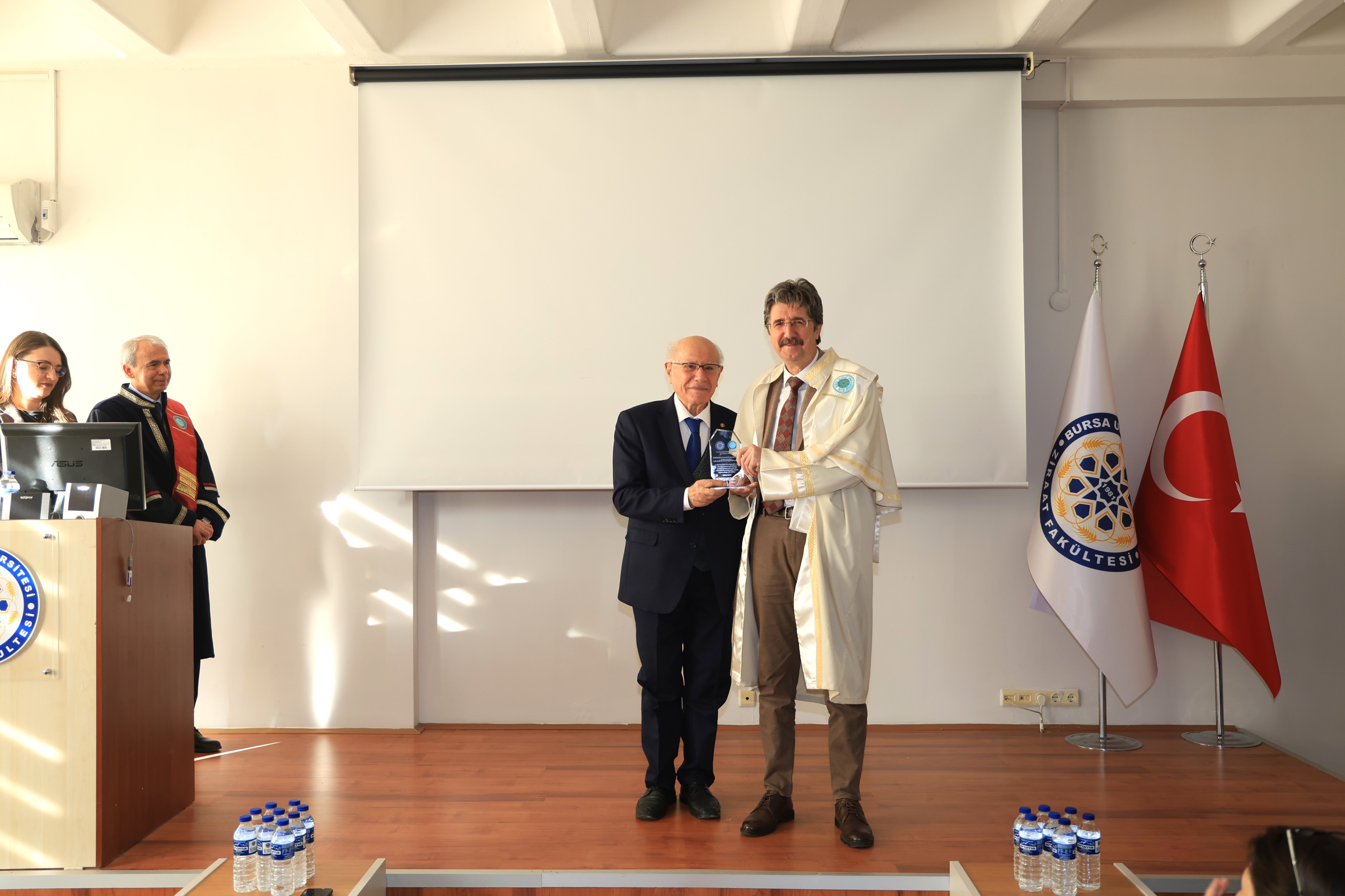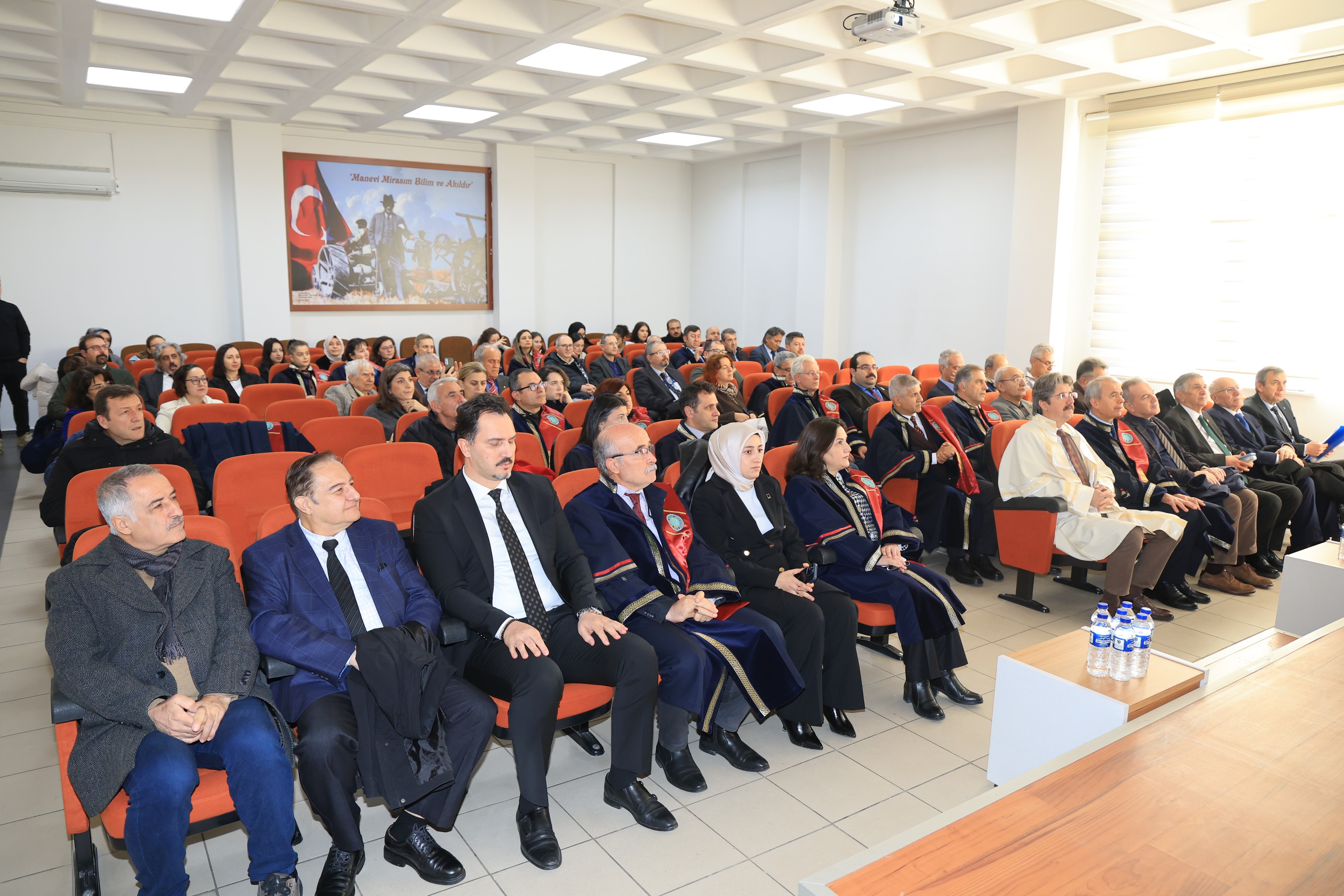 Açılış konuşmalarının ardından emekli öğretim üyesi Prof. Dr. Abdurrahim Korukçu, "Tarım ve Su" başlıklı bir konferans sunumu gerçekleştirerek, tarımsal sulama teknolojileri ve su yönetiminin stratejik önemi hakkında katılımcıları bilgilendirdi. Törenin sonunda, akademik kadroda unvanı yükselen ve profesörlük ile doçentlik kadrolarına hak kazanan öğretim üyelerine plaketleri takdim edildi. Etkinlik, toplu fotoğraf çekimi ve fakülte girişindeki ikramlarla sona erdi.