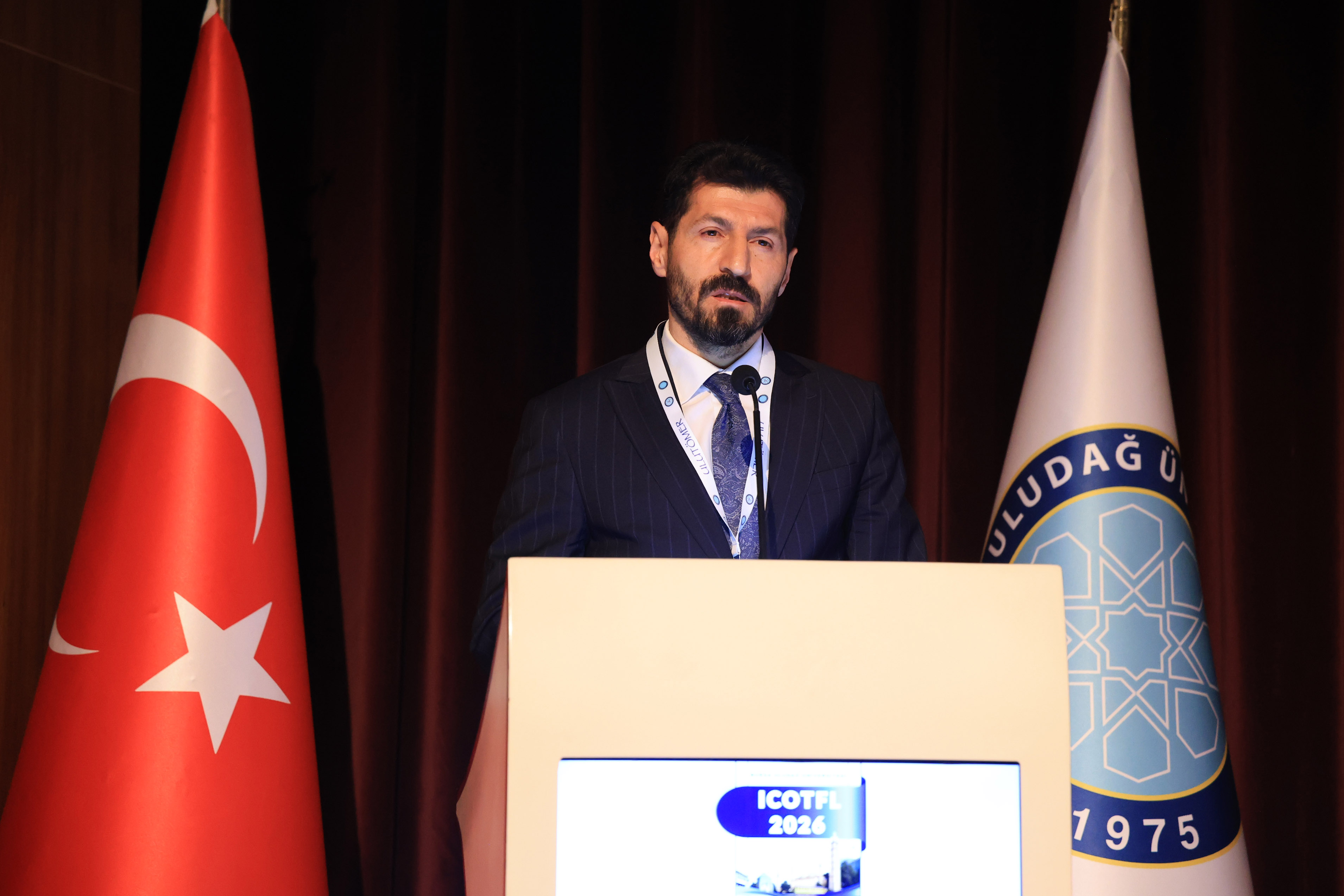 ULUTÖMER Müdürü Prof. Dr. Fatih Demirel, Türkçenin Orhun Yazıtları’ndan günümüze kadar devam eden gelişim sürecini merkeze aldığı konuşmasında, ülkemizin uluslararası arenadaki gücünün dilimize olan talebi artırdığını vurguladı. Dil öğretiminde teknolojinin yadsınamaz bir rolü olduğunu ifade eden Demirel, kongre odağını yapay zekâ ve ölçme-değerlendirme konularına çevirdiklerini belirtti. Dijitalleşen dünyada yeni uygulama örneklerinin geliştirilmesi gerektiğini söyleyen Demirel; organizasyonun mutfağında büyük emek veren Kongre Koordinatörü Öğr. Gör. Dr. Erdem Hamaratlı başta olmak üzere, BUÜ Rektörlüğüne, destek veren kurumlara ve bilimsel katkı sağlayan tüm paydaşlara şükranlarını sundu.