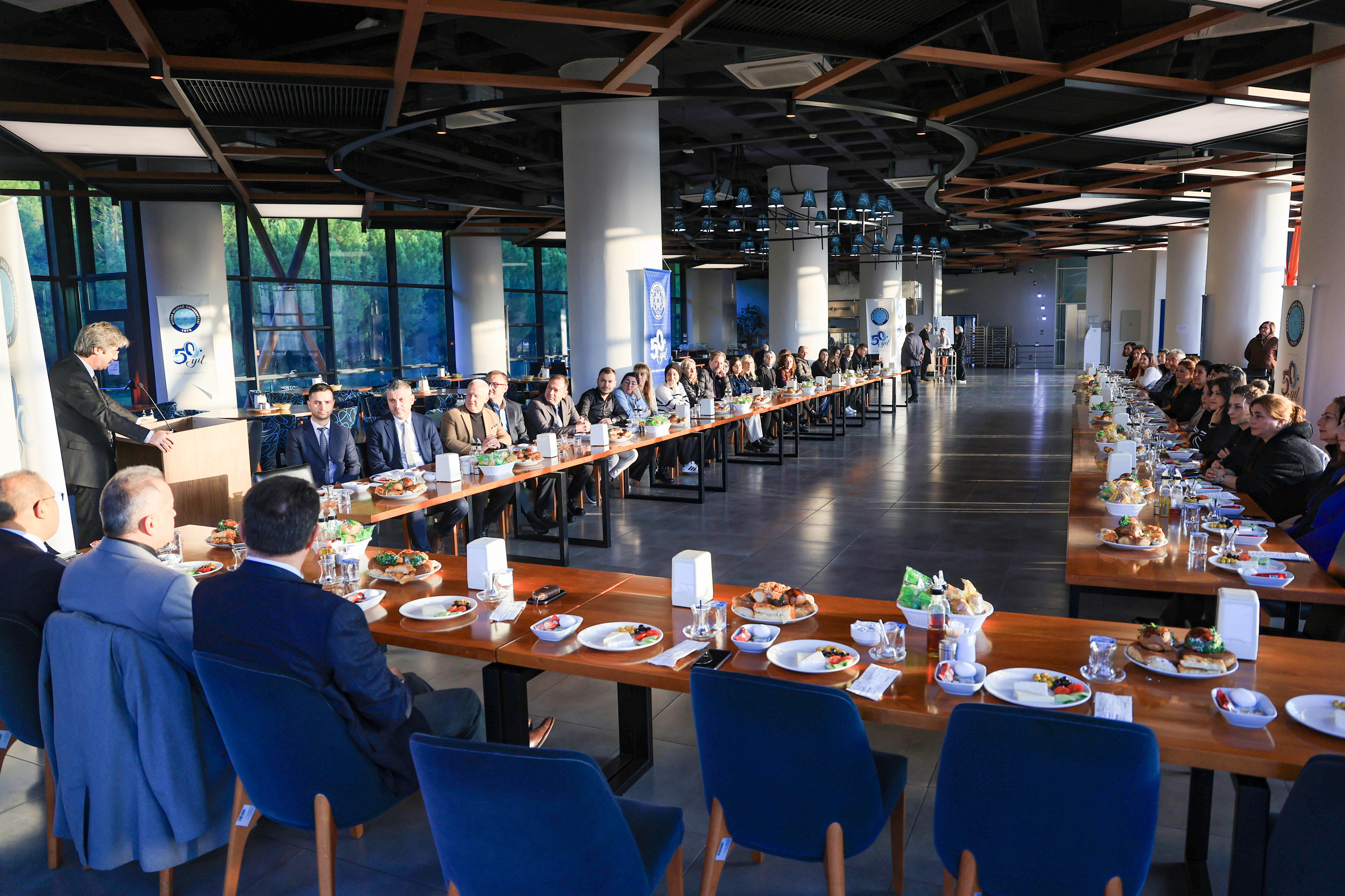 Öğrenci İşleri Daire Başkanı Nurten Alakoç ise personelin her zaman özveriyle ve kurumsal aidiyet duygusuyla iş ayırmadan çalıştığını vurguladı. Bu organizasyonun sadece onları onore etmek, çalışmalarını ve başarılarını taçlandırmak gayesiyle düzenlendiğini ifade eden Alakoç, etkinliğe katılarak kendilerini onurlandıran üst yönetime de teşekkürlerini iletti.