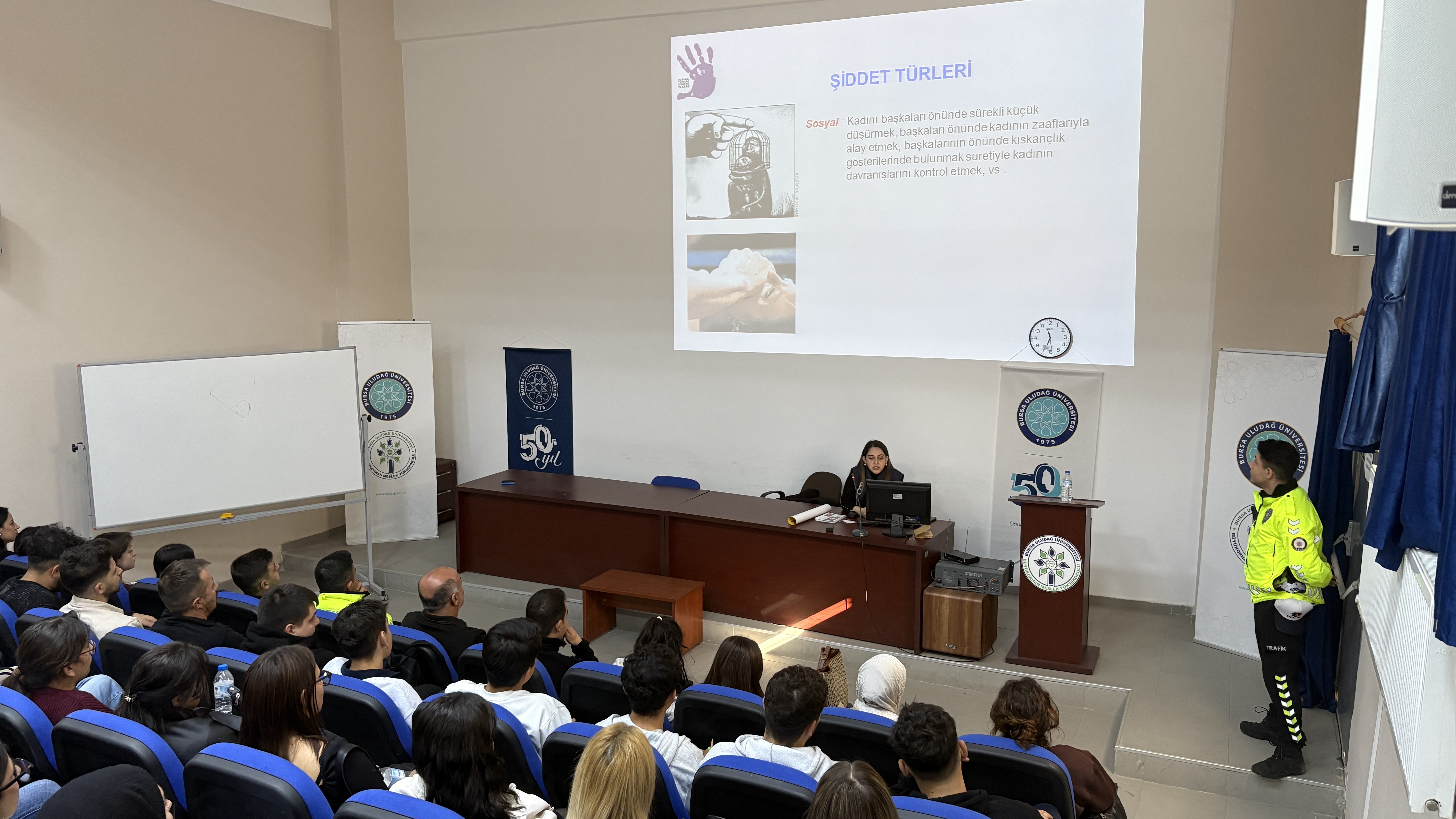 18.11.2025 tarihinde Büyükorhan Meslek Yüksekokulu’nda, öğrencilerimizin bilinç ve farkındalığını artırmaya yönelik Trafik Güvenliği ve KADES (Kadın Destek Uygulaması) semineri gerçekleştirildi. Düzenlenen etkinlikte, trafik kurallarına uyumun önemi, kazaların temel nedenleri, güvenli sürüş teknikleri ve toplumsal trafik bilincinin güçlendirilmesi üzerine kapsamlı bilgiler aktarıldı.
