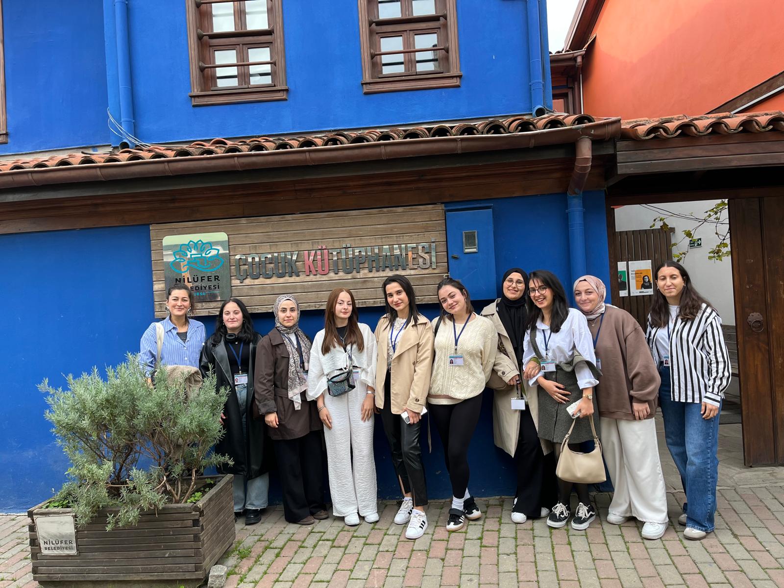 Gezi programı kapsamında ilk durak, Nilüfer Belediyesine bağlı Nilüfer Çocuk Kütüphanesi oldu. Öğrenciler burada çocuk edebiyatına yönelik güncel kaynakları inceleyerek kütüphanenin işleyişi, çocuklara sunulan hizmetler ve okuma kültürünü destekleyici uygulamalar hakkında bilgi aldılar.