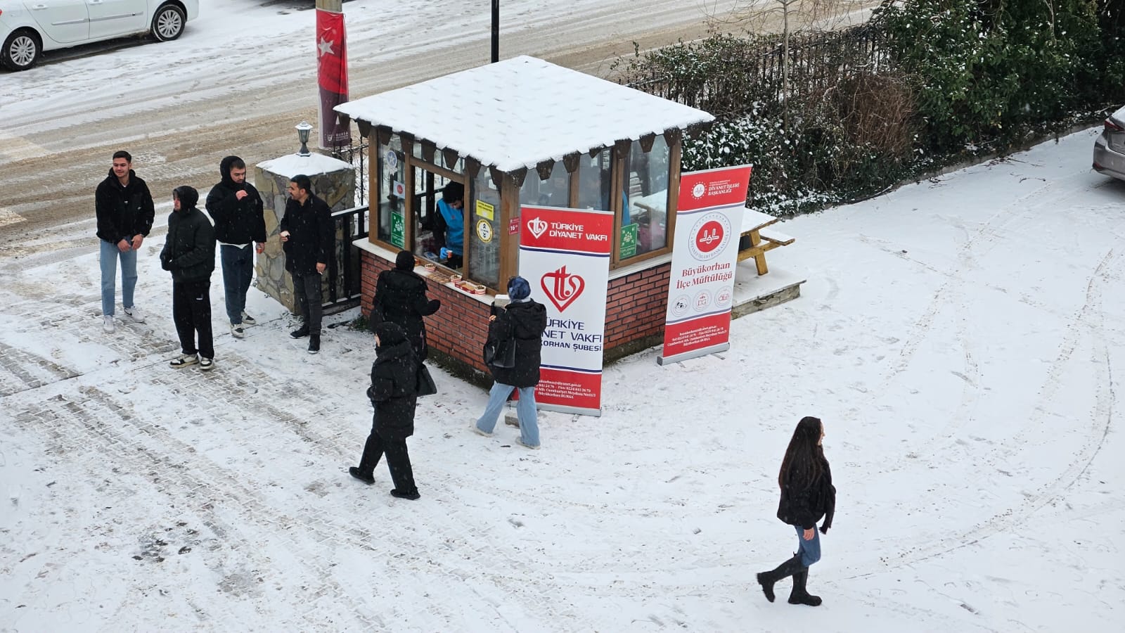 Büyükorhan Kaymakamlığı ve Büyükorhan İlçe Müftülüğü iş birliğiyle, final haftası boyunca öğrencilerimize yönelik çay ve çorba ikramı etkinliği devam ediyor. Rektörlüğümüz tarafından onaylanan etkinlik kapsamında, soğuk kış günlerinde öğrencilerin içini ısıtacak ikramlar bahçemizde sunuluyor.