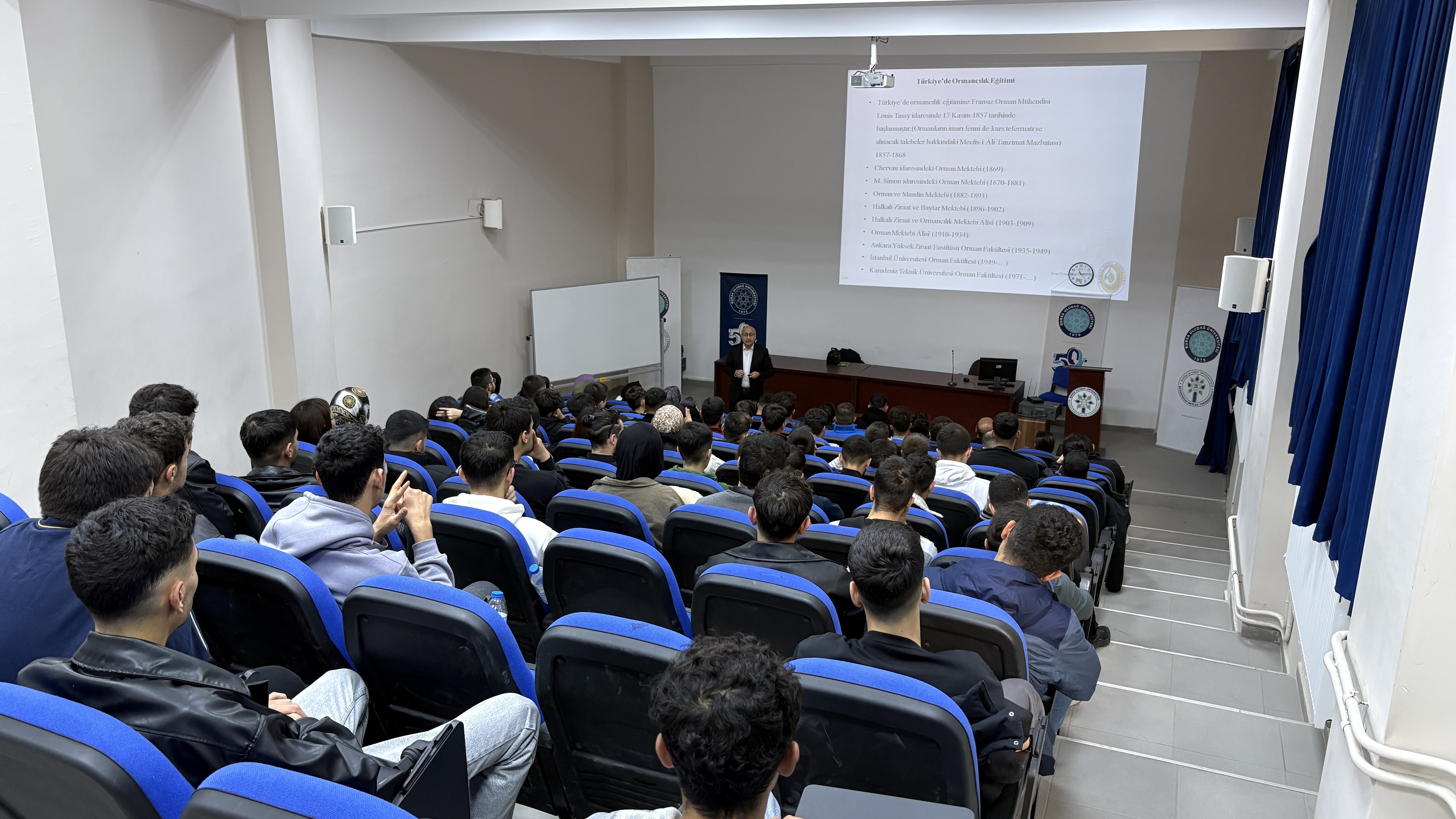20.11.2025 saat 11.00’de Bursa Orman Bölge Müdürlüğünde Şube Müdürü Şükrü AÇICI tarafından Ormancılık Bölümü öğrencilerine yönelik "Tanzimat Fermanından Günümüze Türkiye Ormanlarının Yönetimi ve Planlı Ormancılık" konulu seminer gerçekleştirildi. Seminer, geleceğin Orman Muhafaza Memuru adayları olan öğrenciler tarafından ilgiyle takip edildi.