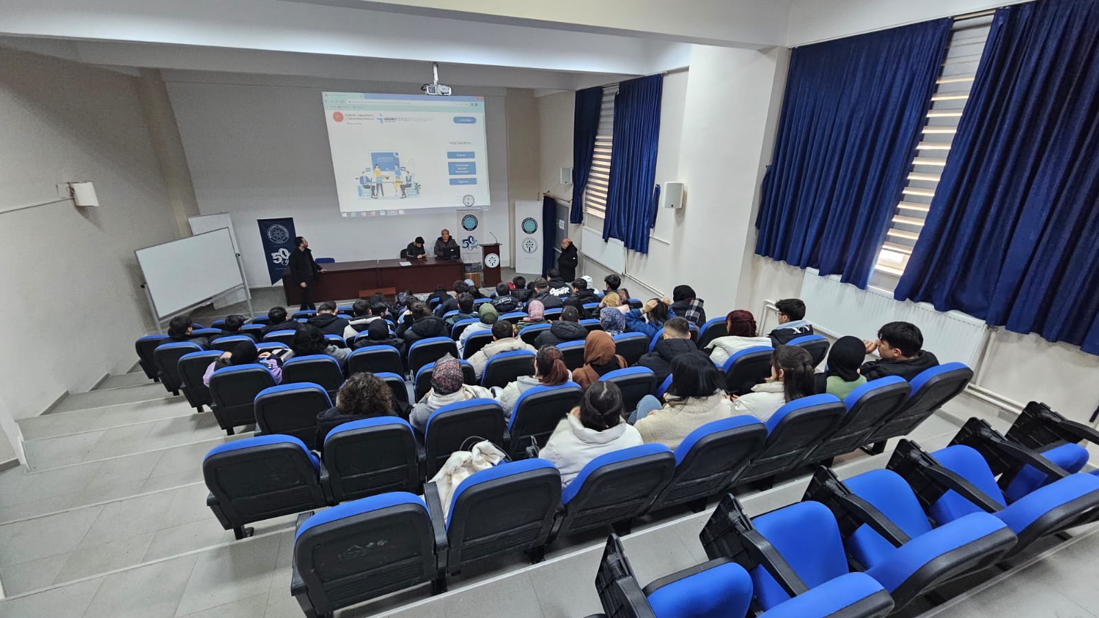 Kariyer Kapısı Platformu üzerinden yürütülen 2026 yılı Ulusal Staj Programı kapsamında, 15.01.2026 tarihinde Büyükorhan MYO Konferans Salonunda tüm öğrencilerimize yönelik bilgilendirme semineri düzenlendi. Seminerde, öğrencilerin başvuru sürecini doğru ve eksiksiz şekilde tamamlayabilmeleri amacıyla başvuru aşamaları detaylı olarak ele alındı.