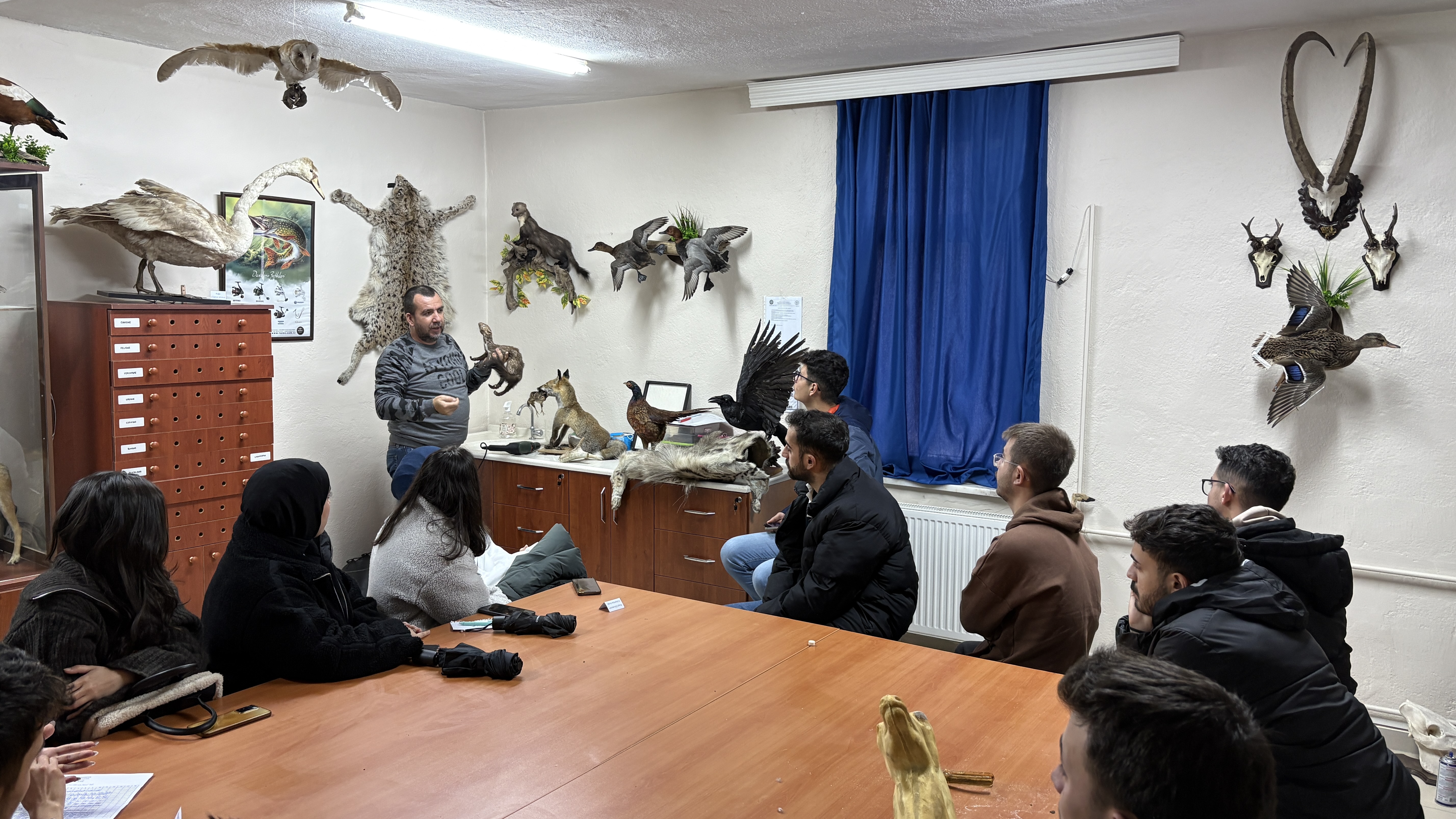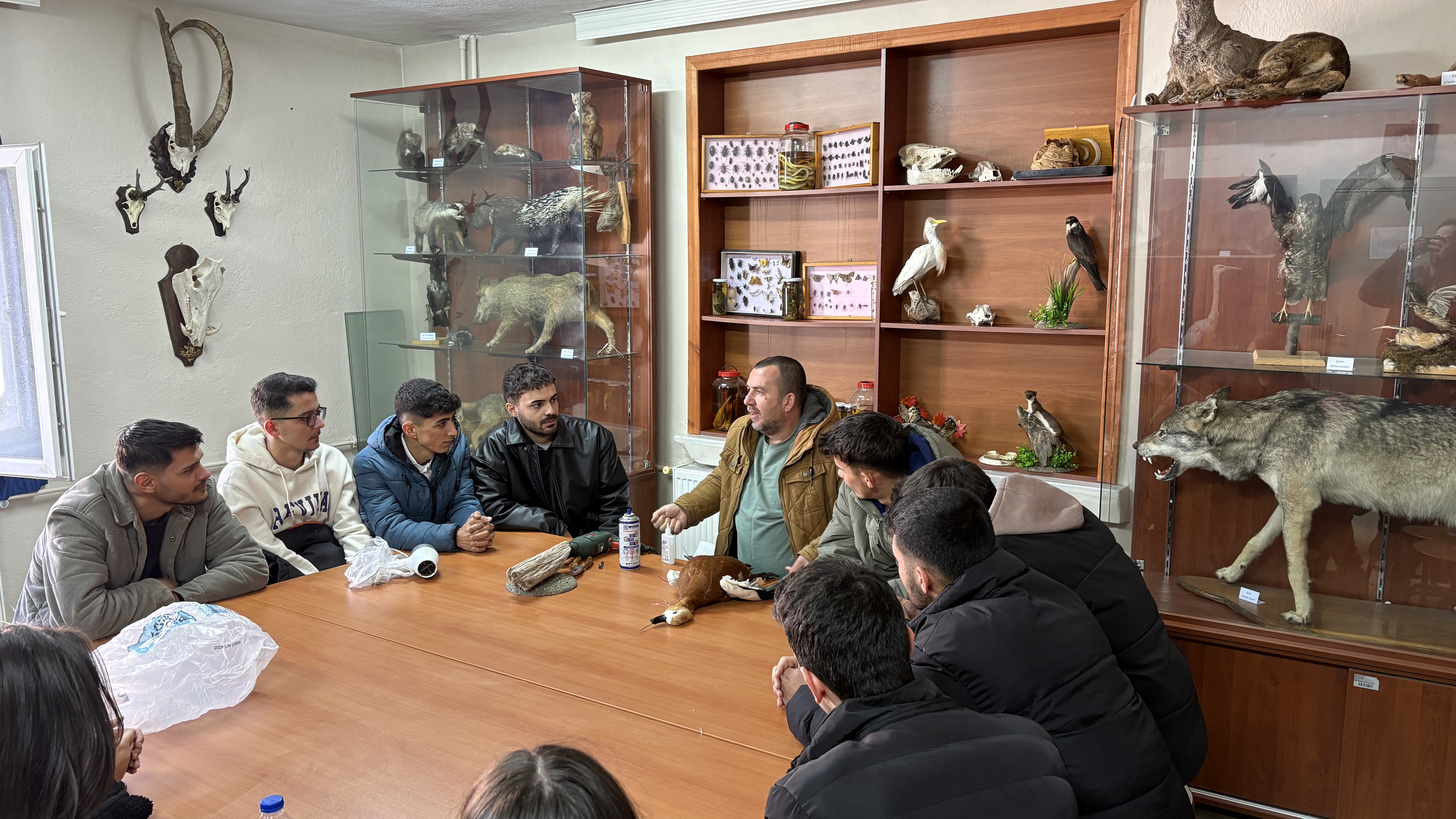Avcılık ve Yaban Hayatı Programı öğrencilerine yönelik olarak, alanında uzman ve işin ehli bir isim olan taksidermist Barış Süleyman tarafından 18.12.2025 ve 25.12.2025 tarihlerinde iki gün süren tahnit (taksidermi) uygulaması gerçekleştirildi. Uygulama, öğrencilerin mesleki bilgi ve becerilerini artırmaya yönelik olarak uygulamalı eğitim şeklinde yürütüldü.