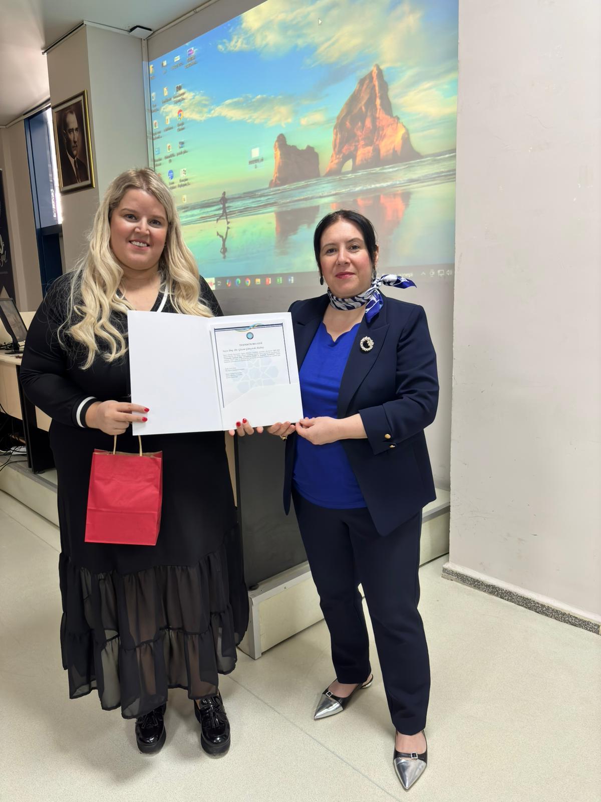 Etkinliğin sonunda, katkılarından dolayı Doç.Dr.Gizem GÜNÇAVDI ALABAY'a Bursa Uludağ Üniversitesi Eğitim Bilimleri Enstitüsü Müdürlüğü tarafından teşekkür belgesi takdim edildi.