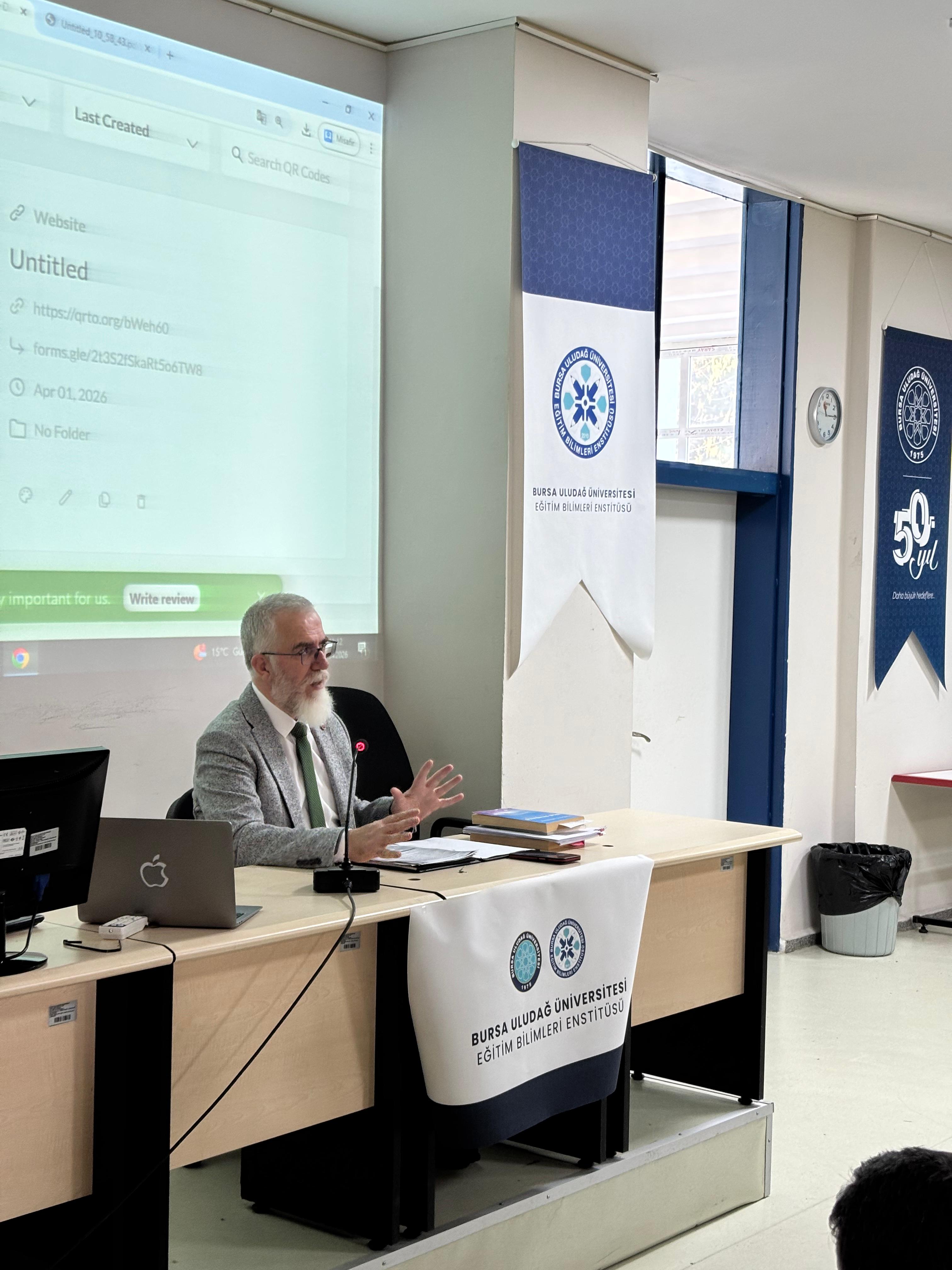 Bursa Uludağ Üniversitesi Eğitim Bilimleri Enstitüsü tarafından düzenlenen 2025–2026 Eğitim-Öğretim Yılı Bahar Dönemi Lisansüstü Seminer Serisi kapsamında, “Nitel Araştırma Türleri ve Disipliner Yönelim” başlıklı seminer başarıyla gerçekleştirildi.