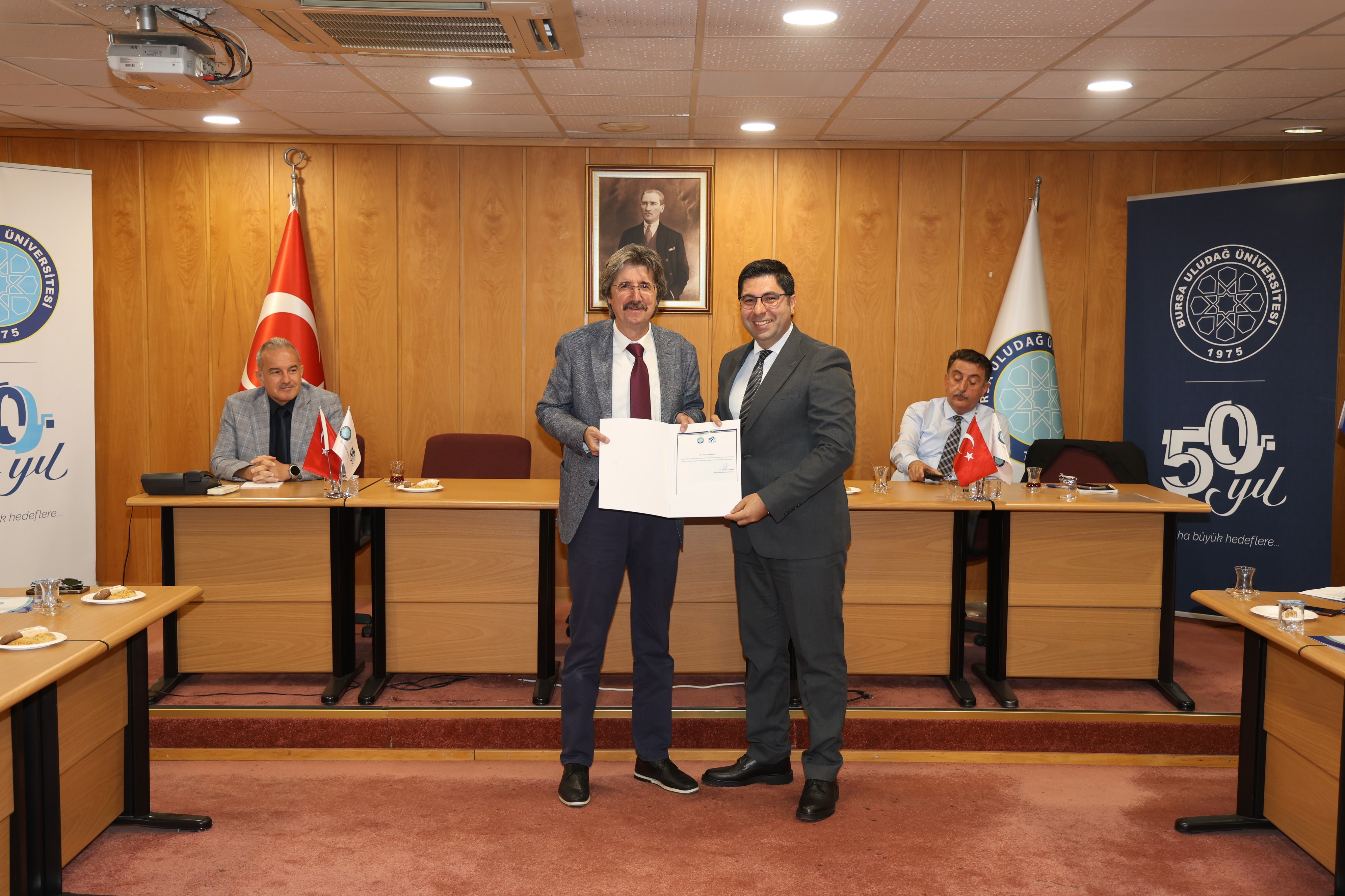 BUÜ Rector Prof. Dr. Ferudun Yılmaz, Vice Rectors Prof. Dr. İrfan Kırıştıoğlu and Prof. Dr. Cafer Çiftci, R&D Coordinator Prof. Dr. Esra Karaca, deans, department heads, and academic and administrative staff attended the event held in Rectorate Hall B.