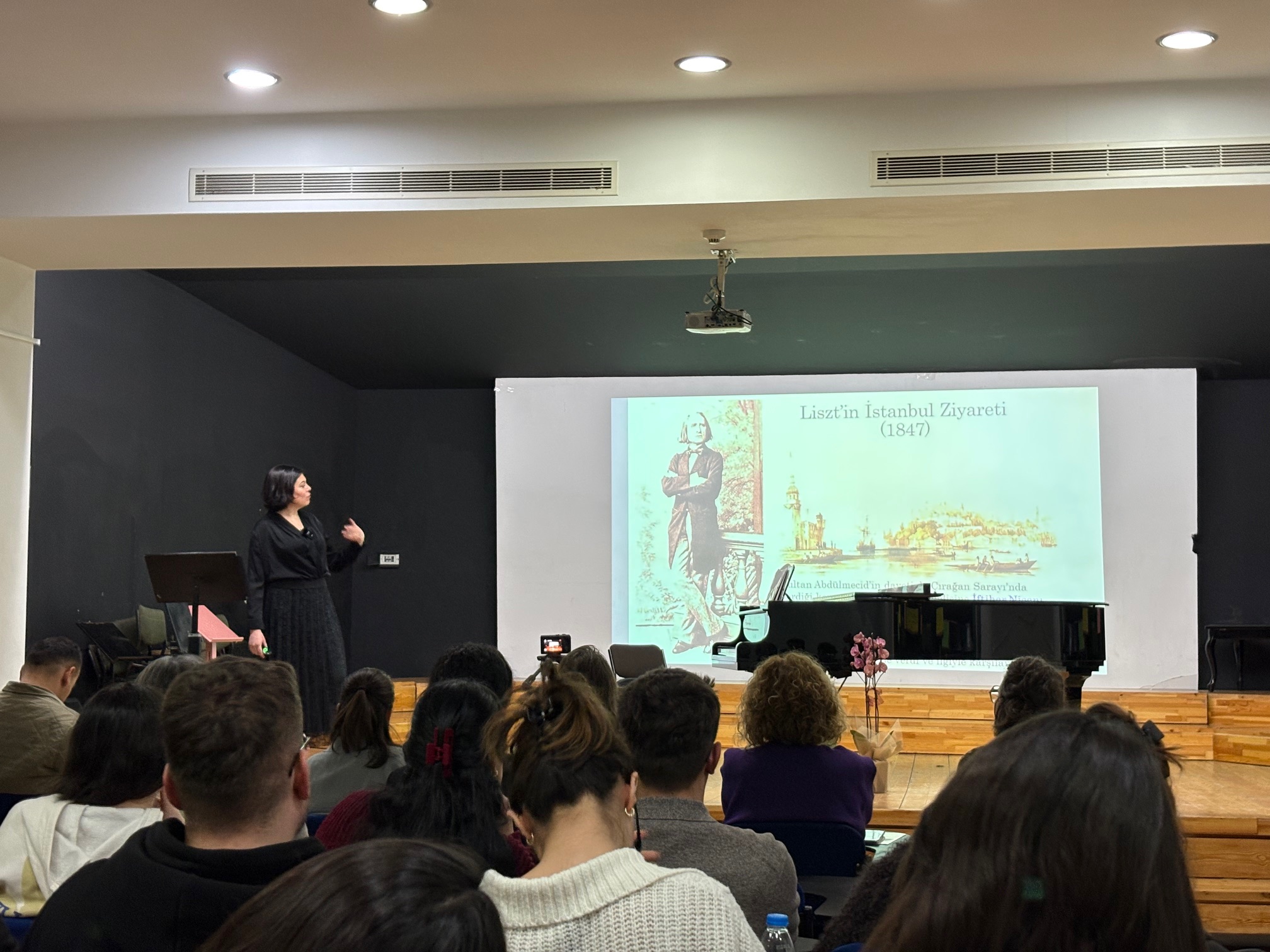 The “Narrated Liszt Recital,” organized by our University’s Department of Music Education, brought together art enthusiasts through the narration and performance of Assoc. Prof. Dr. Elif Gökçe Türkili. Held at the Music Education Department Concert Hall, the event offered a comprehensive exploration of the life and musical legacy of one of the most prominent composers of the Romantic era, Franz Liszt.