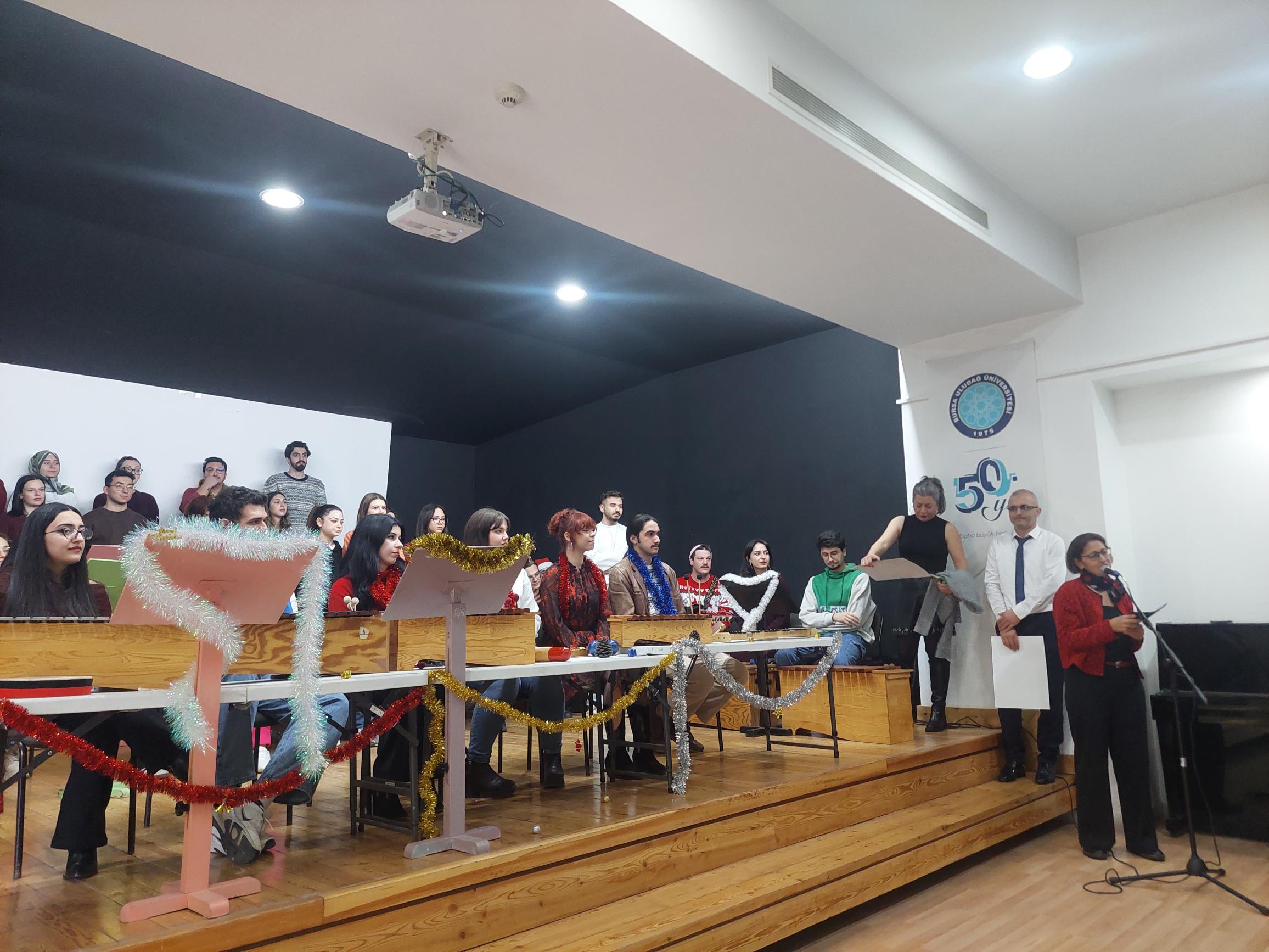 The program was further enriched by surprise contributions. Piano accompaniment by our support staff member Ferdi Oruç and a frame drum performance by our department secretary Özlem Şengöz added a sincere and warm atmosphere to the concert.