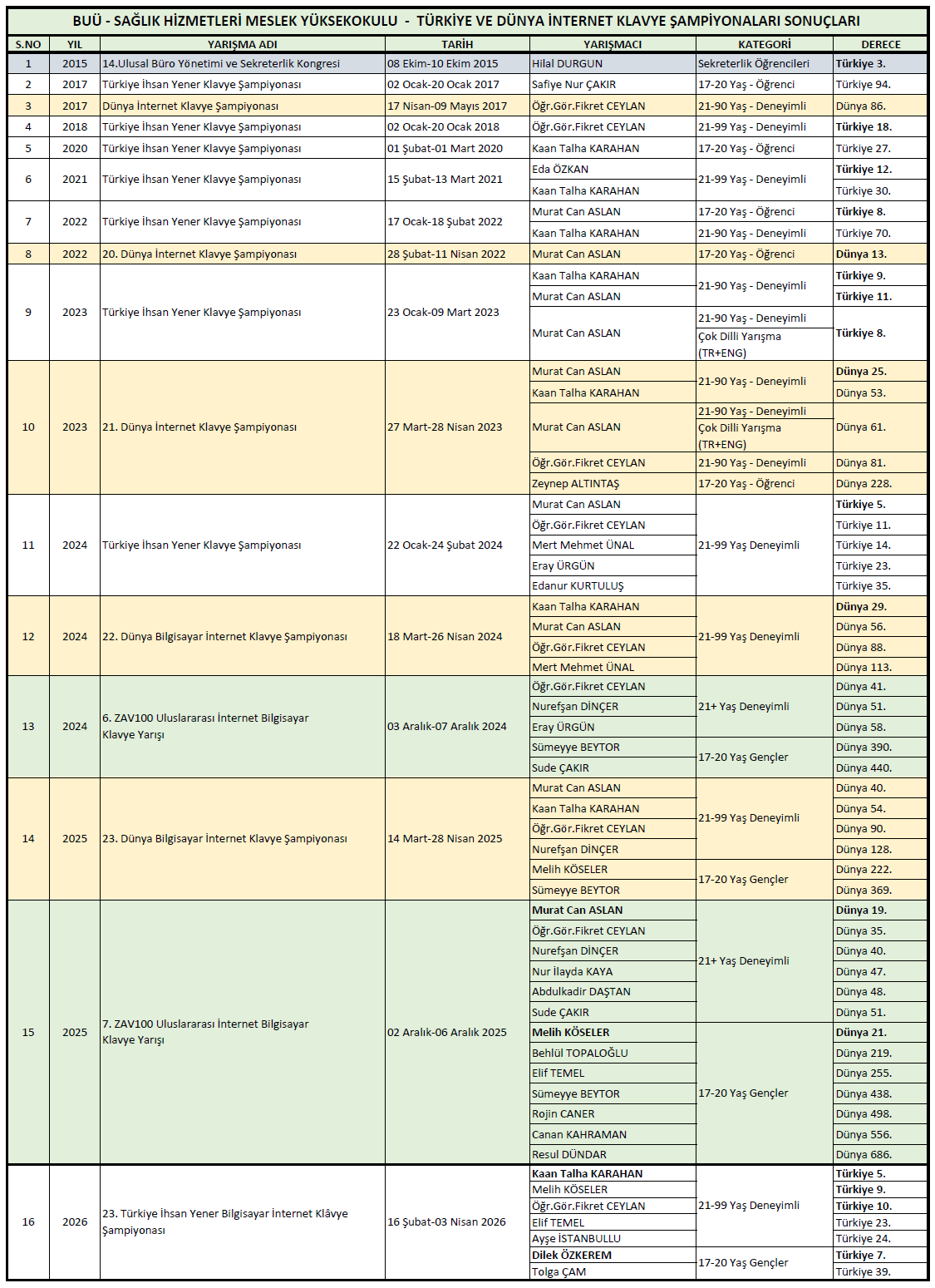 At the 2026 Turkey İhsan Yener Internet Computer Keyboard Championship, we made our mark by securing 5th, 9th, and 10th place in the Experienced category, and 7th place in the Youth category...