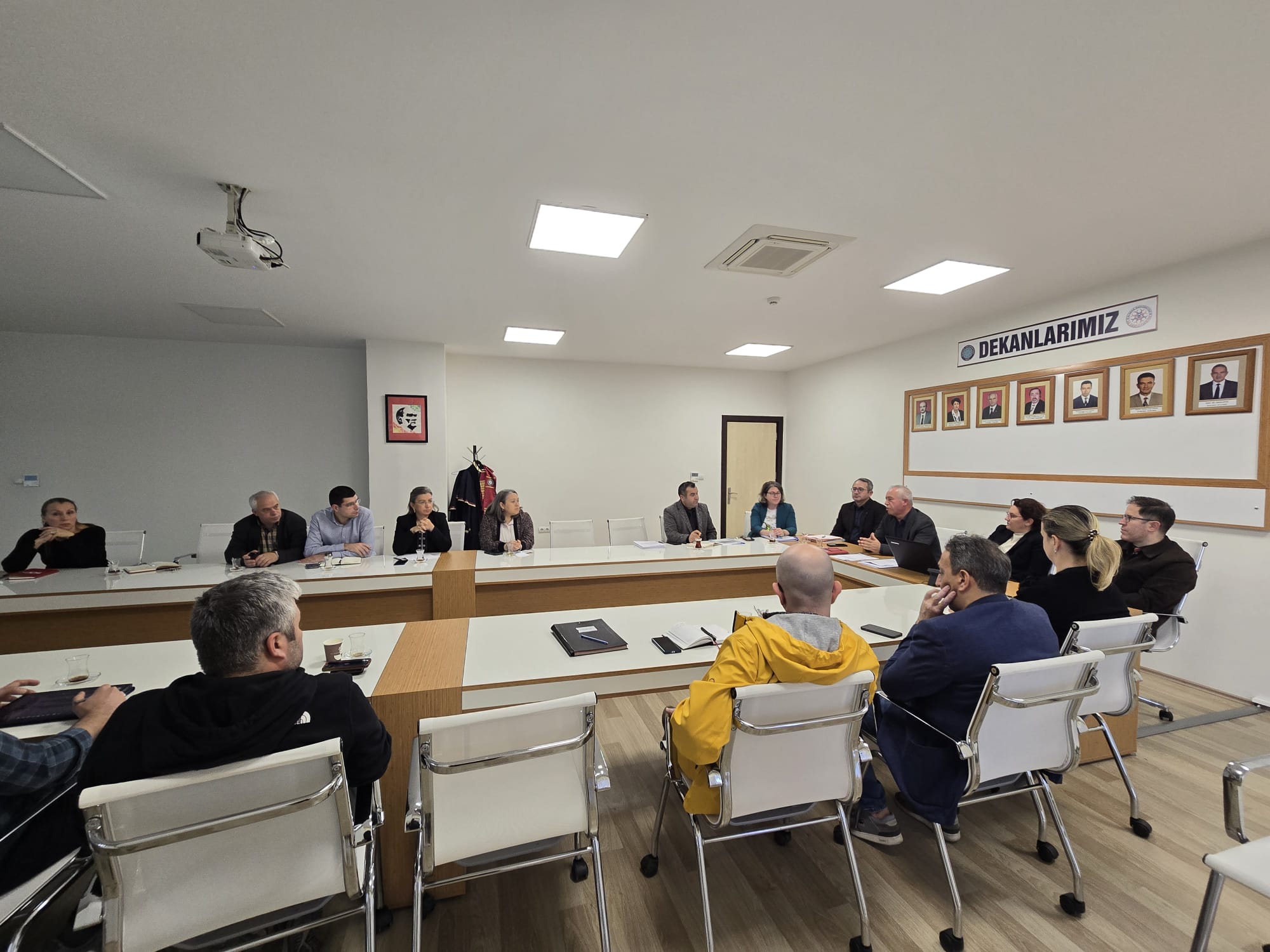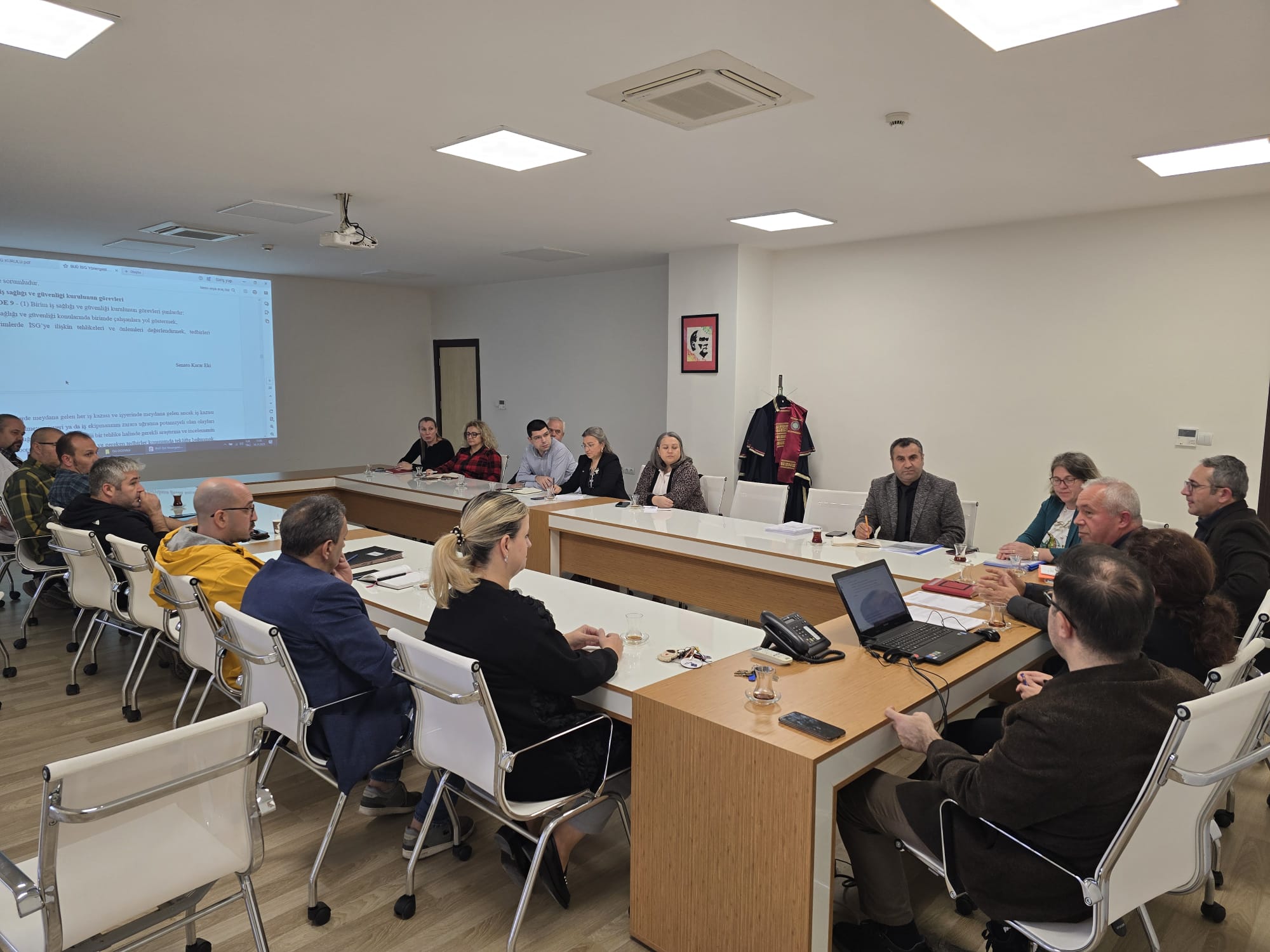 18 Kasım 2025 tarihinde saat 14:30'da yapılan İş Sağlığı ve Güvenliği Kurulu toplantısı yapılmıştır. Toplantı gündeminde; iş sağlığı ve güvenliği eğitimlerinin belirlenmesi, geçmişe yönelik toplantı tutanaklarının incelenmesi, risk değerlendirme raporunun güncellenmesi, ramak kala kazalarının kayıt altına alma yöntemlerinin belirlenmesi, Fakültemiz fen bölümlerinde bulunan laboratuvarlardaki kimyasal envanterlerin tespiti, iş ekipmanlarının belirlenmesi ve periyodik kontrollerinin yapılıp yapılmadığının tespit edilmesi, kişisel koruyucu ekipman ve envanterlerin hazırlanmasına ilişkin bilgilendirmeler yer almıştır.