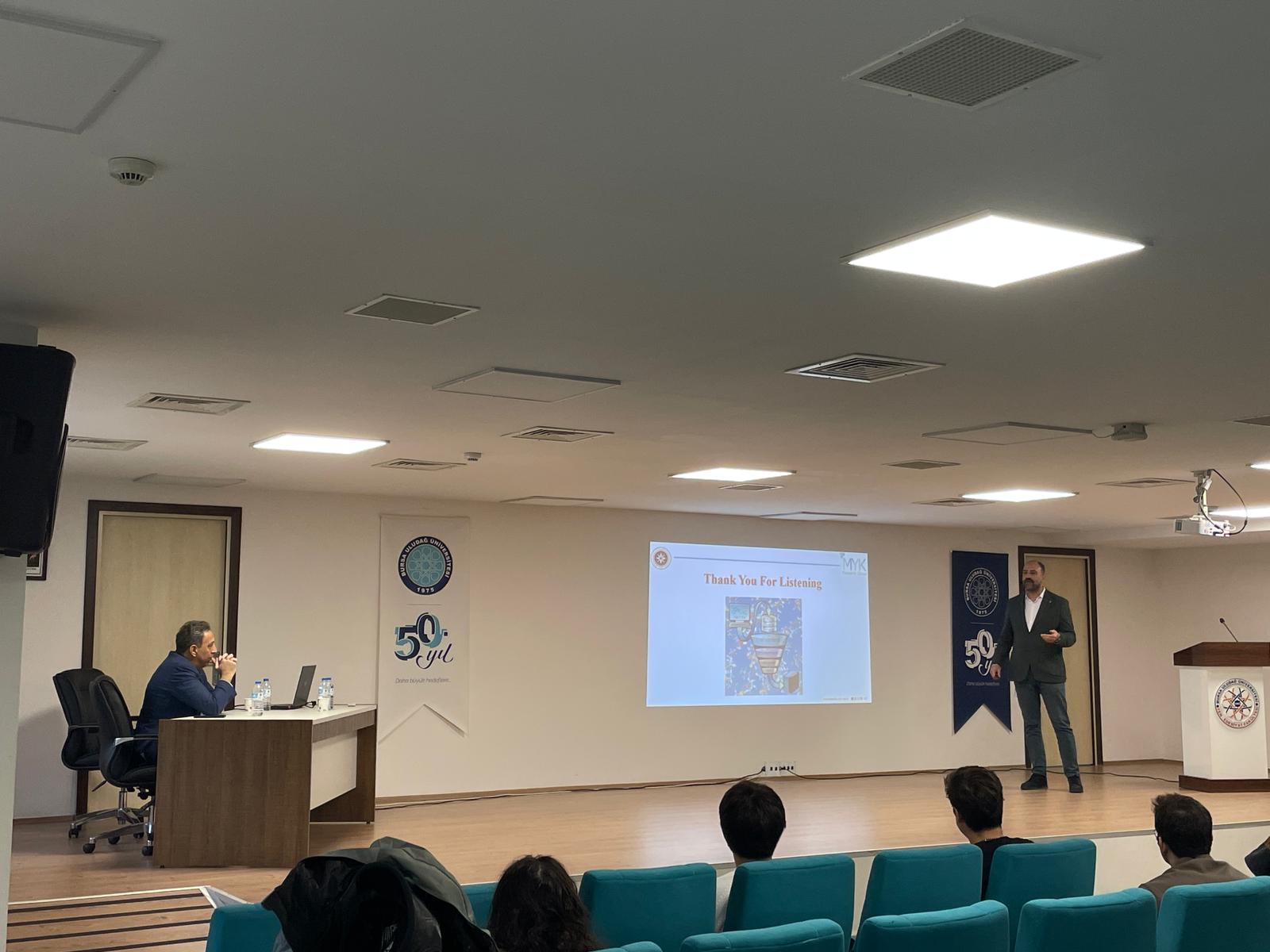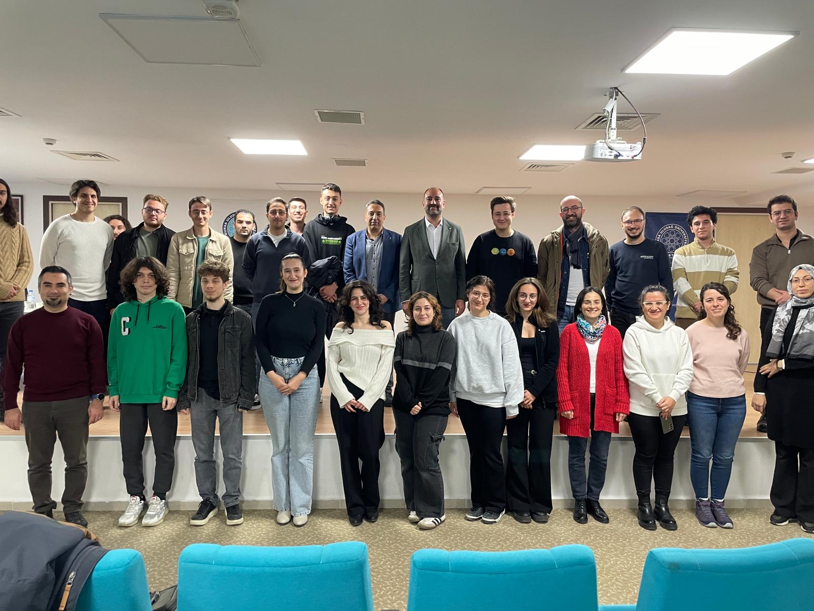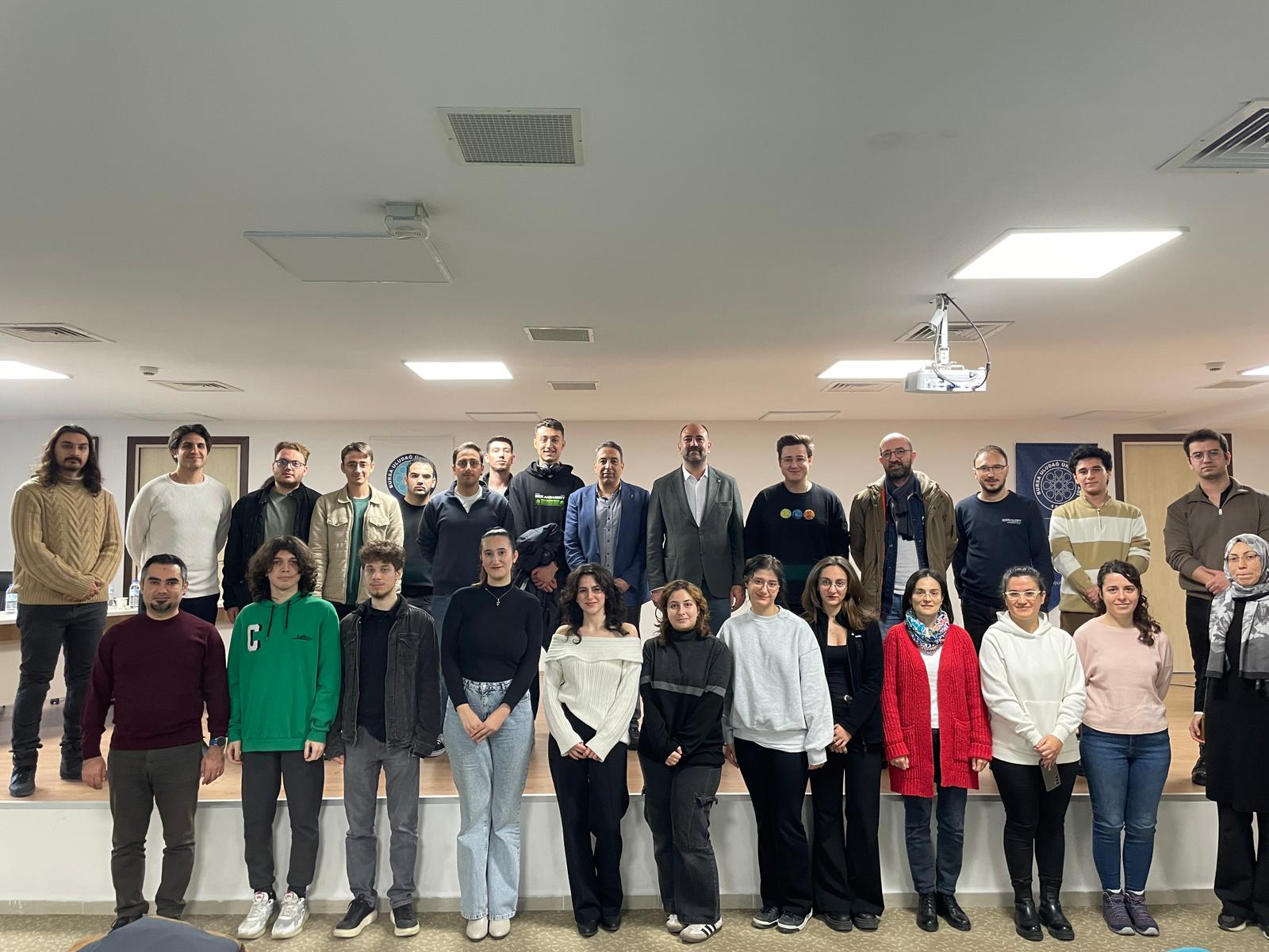 Akademik ve idari personelimiz ile öğrencilerimizin yoğun ilgi gösterdiği etkinlikte; yoğunluk fonksiyonel teorisi (DFT), düşük boyutlu malzemelerin modellenmesi, elektronik bant yapıları ve heteroyapı tasarımı gibi güncel konular derinlemesine ele alındı. Sayın Yağmurcukardeş, teorik bilgilerin yanı sıra güncel araştırma örnekleriyle nanoölçekli aygıt tasarımı ve kuantum teknolojileri üzerine ufuk açıcı paylaşımlarda bulundu.