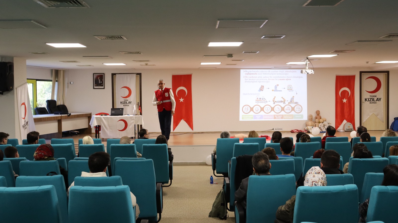 Değerli sunumları için Doç. Dr. Egemen Dere’ye, tüm katılımcılara, Türk Kızılayı Bursa Şubesi İlk yardım Merkezi personeline, Üniversitemiz Genç Kızılay Topluluğuna, Fizik Bölümü Öğrenci Topluluğuna ve emeği geçen herkese teşekkür ederiz.