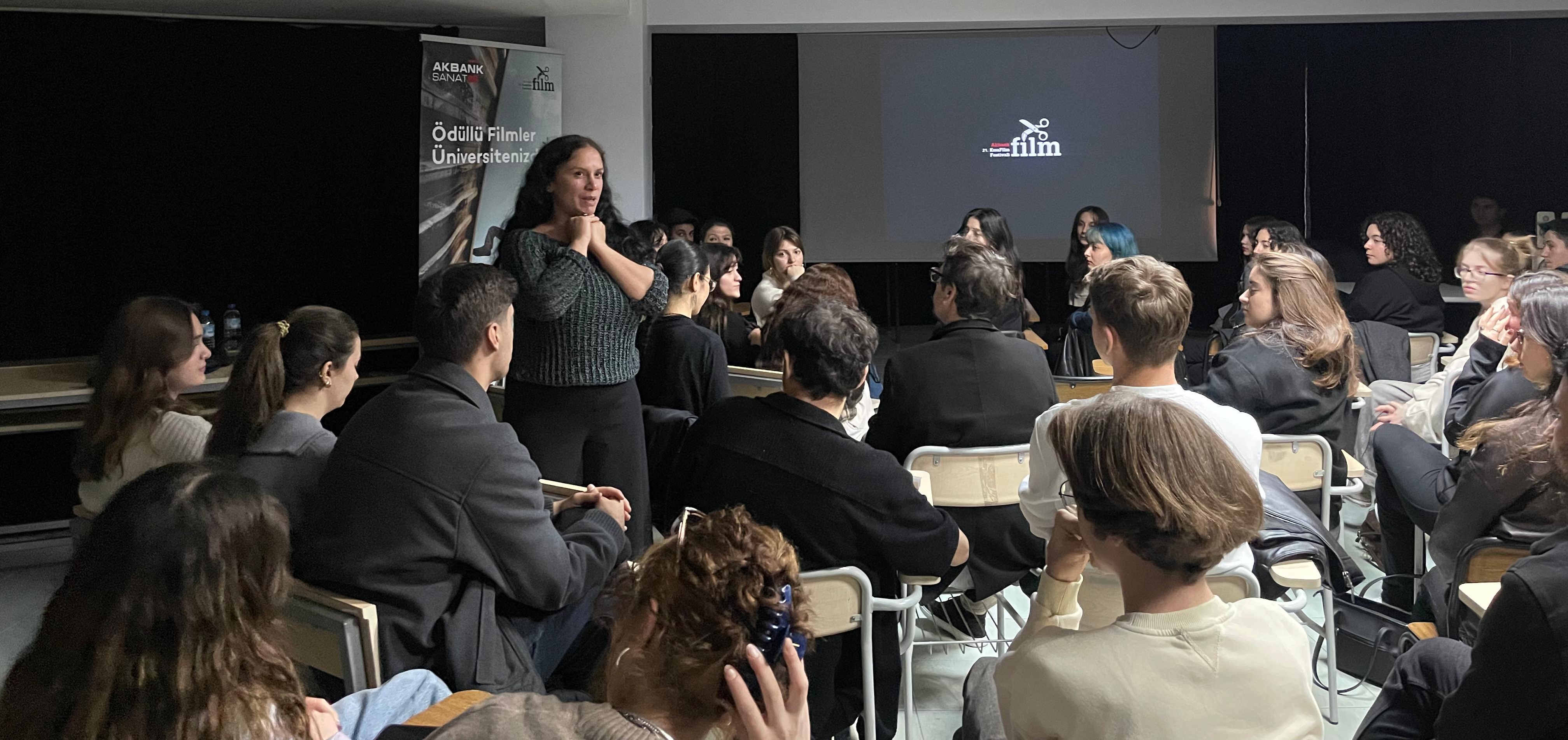 Akbank Sanat Programlar ve Festival Direktörü Elif Ergin’in katılımıyla gerçekleşen etkinliğe, başta BUÜ Güzel Sanatlar Fakültesi Sahne Sanatları Bölümü öğrencileri olmak üzere Fakülte öğrencileri yoğun ilgi gösterdi. Programda, festivalin uluslararası, ulusal ve genç bakış kategorilerinde ödül alan üç kısa filmi izleyicilerle buluştu. Gösterimlerin ardından, BUÜ Güzel Sanatlar Fakültesi Dekan Yardımcısı Doç. Dr. İbrahim İ. Öztahtalı, Elif Ergin’e çiçek ve teşekkür belgesi takdim etti.