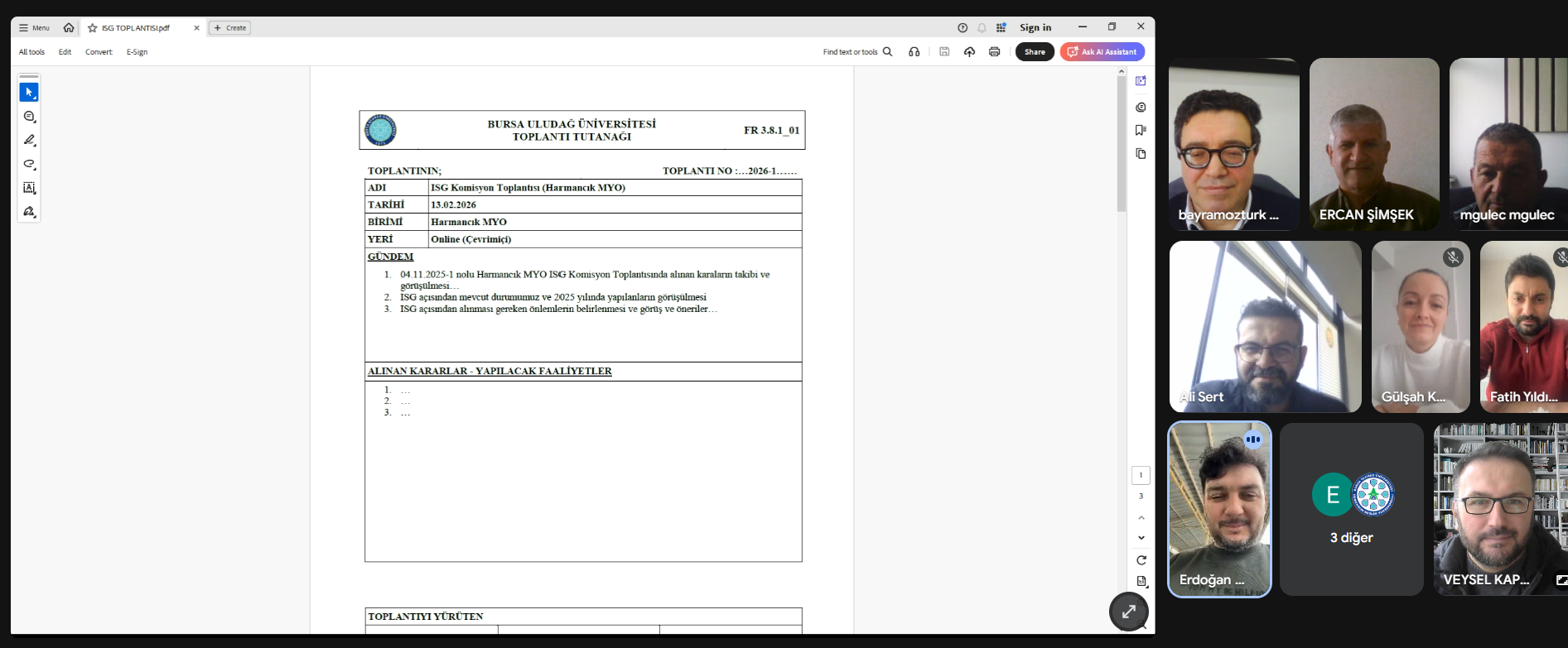 BİDR ve İş Sağlığı ve Güvenliği Toplantısı