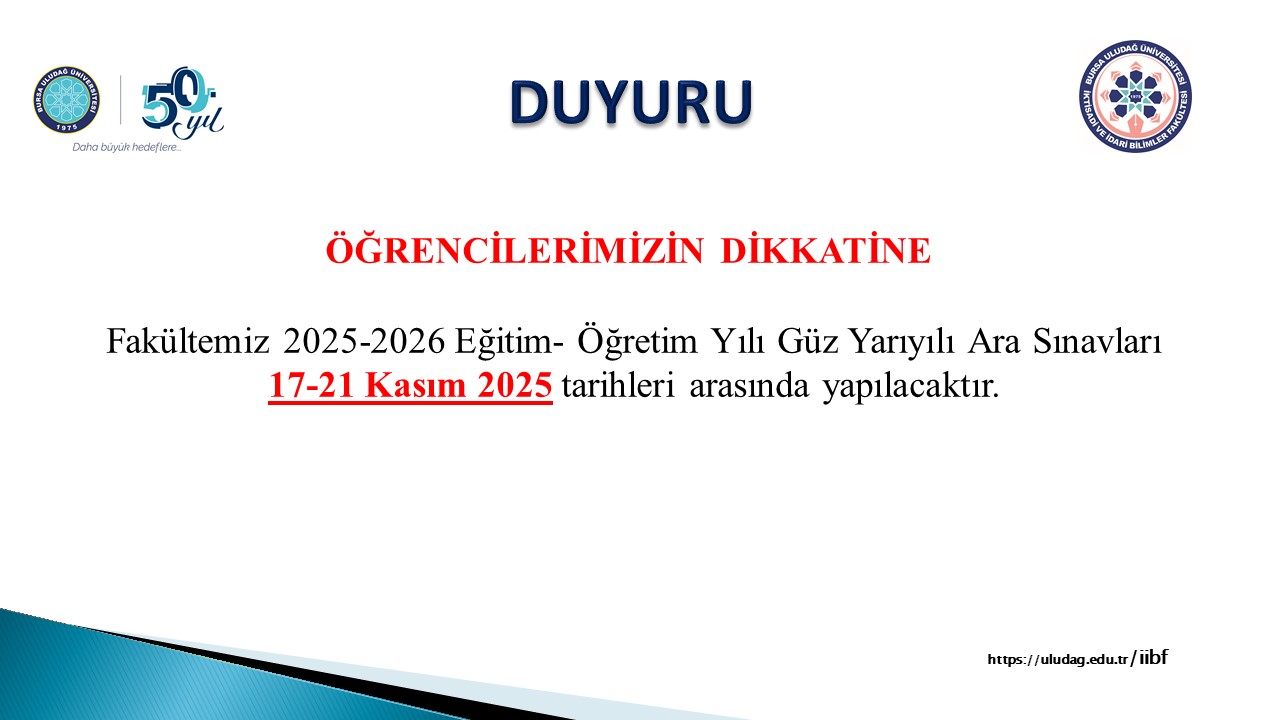 2025-2026 Eğitim- Öğretim Yılı Güz Öğretimi Ara Sınav Tarihleri