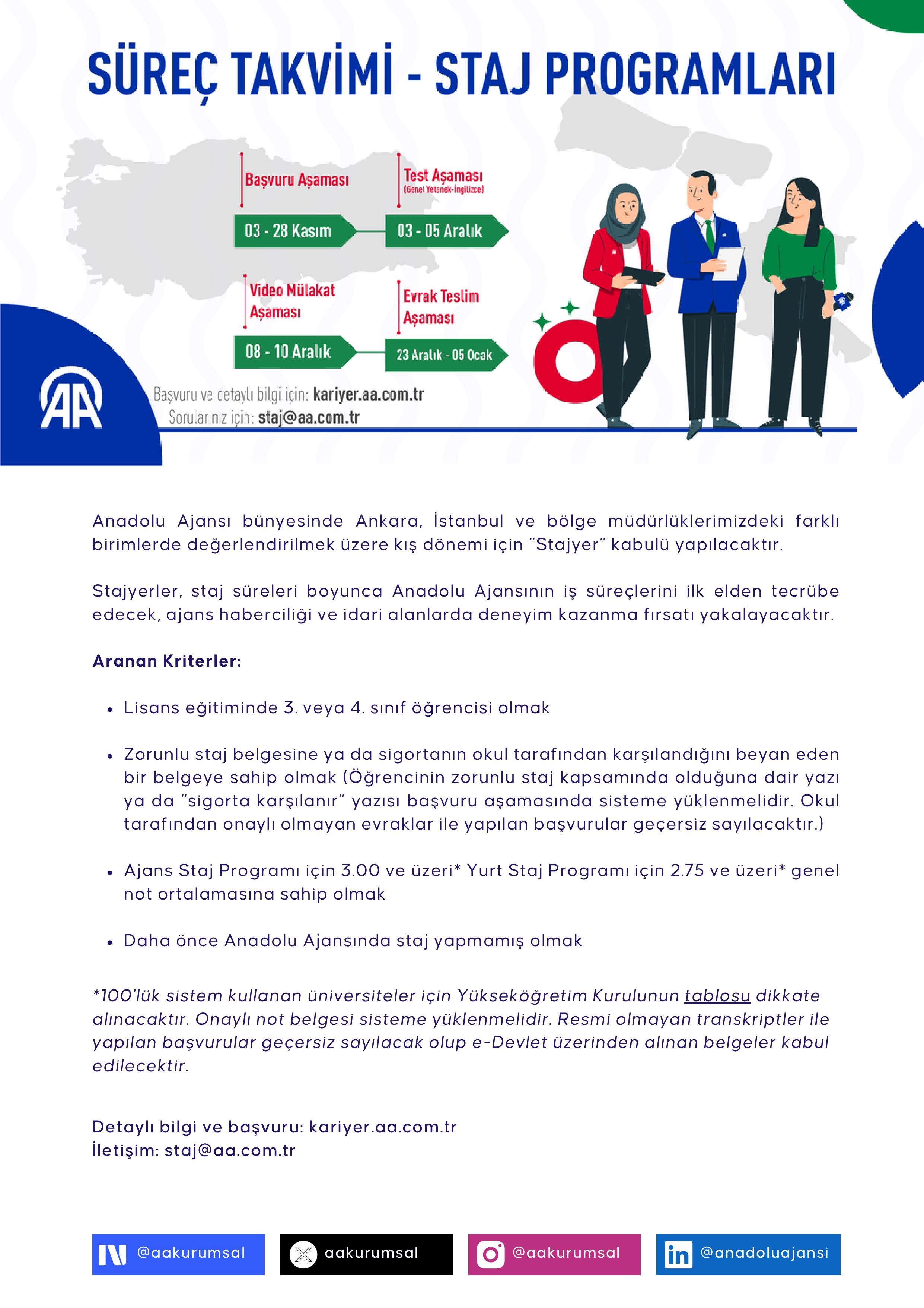 Anadolu Ajansı Staj Programları Hakkında Duyuru