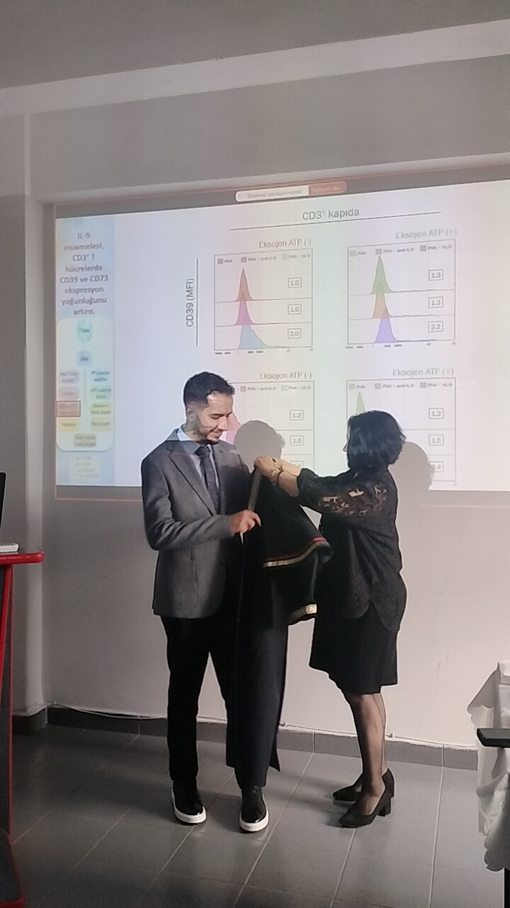 İmmünoloji Ana Bilim Dalı doktora öğrencimiz Muhammed Ali Kızmaz, tez danışmanlığını Prof. Dr. Ferah Budak Şener’in yürüttüğü “ATP–Adenozin Metabolizmasının Düzenlenmesinde IL-9 Sitokininin Potansiyel Rollerinin İncelenmesi” başlıklı doktora tez çalışmasını başarıyla savunarak İmmünoloji Bilim Doktoru unvanını almaya hak kazanmıştır.