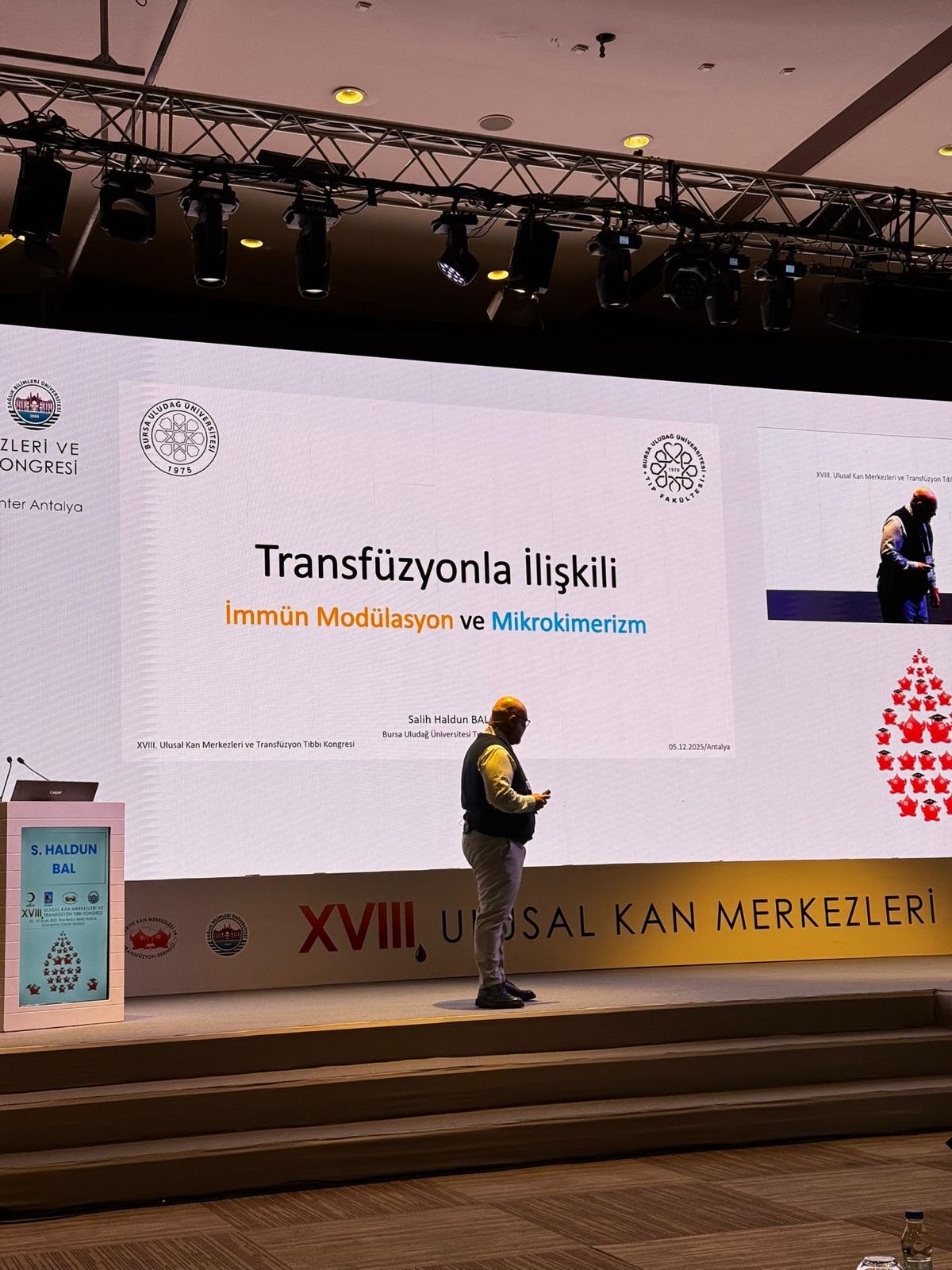 Ana Bilim Dalımız öğretim üyelerinden Dr. Öğr. Üyesi Salih Haldun Bal, kongre kapsamında düzenlenen Transfüzyon İmmünolojisi oturumunda “Transfüzyon İlişkili İmmünmodülasyon ve Mikrokimerizm” başlıklı konuşmasını gerçekleştirdi.