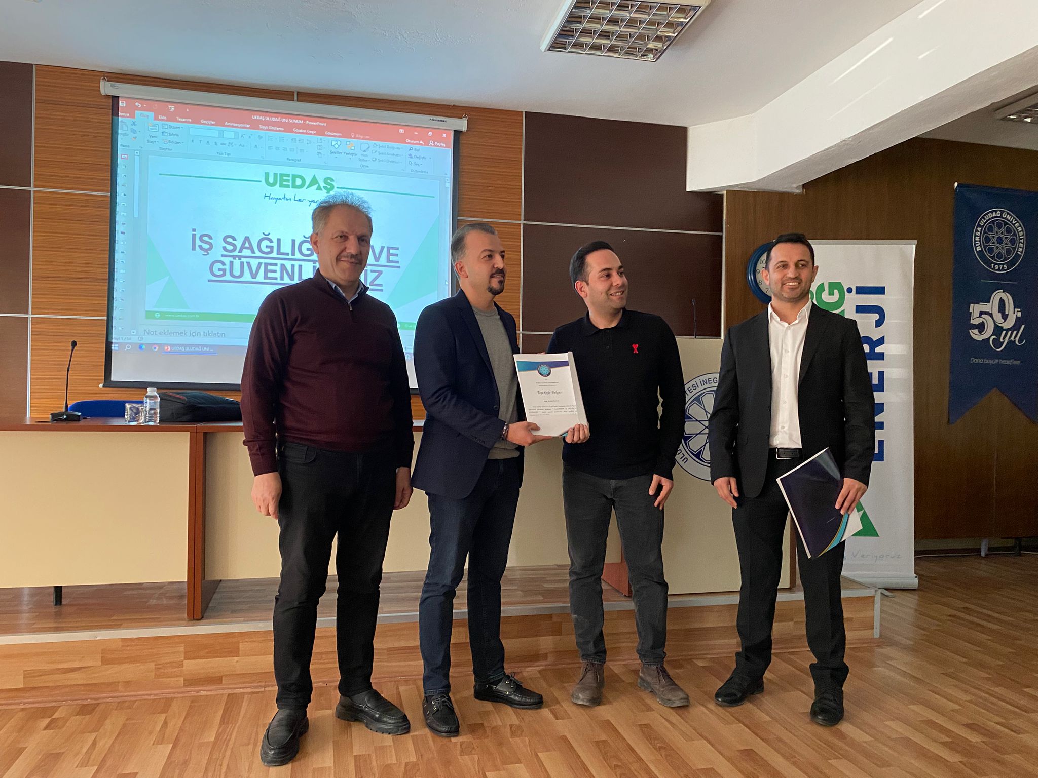 Seminer sonunda, katkılarından dolayı UEDAŞ İnegöl İşletme Müdürü Serkan Akkaya’ya teşekkür belgesi, İnegöl Meslek Yüksekokulu Müdürü Prof. Dr. Hikmet Sami Yıldırımhan tarafından takdim edildi. Ayrıca, etkinliğe sağladığı desteklerden dolayı UEDAŞ İnsan Kaynakları İş Ortağı Alper Temur’a teşekkür belgesi, Elektrik Enerjisi Üretim, İletim ve Dağıtımı Program Başkanı Öğr. Gör. Dr. Ömer Eriş tarafından sunuldu.