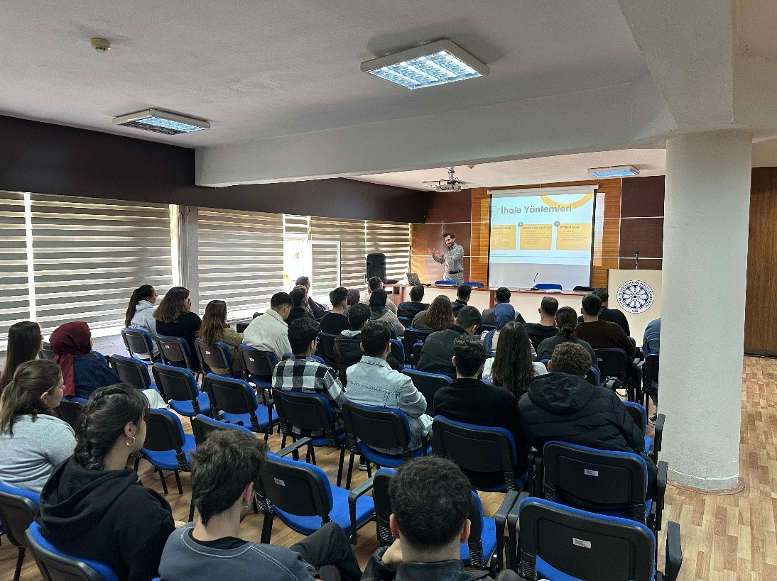 Ardından, Weq Design Yönetim Kurulu Başkanı Abdullah Aktı’nın verdiği “Kamu İhale Usulü” konulu seminerde, kamu projelerinde ihale süreçleri, mevzuatın temel ilkeleri ve yüklenici sorumlulukları ele alındı. Öğrencilerimiz, sektörde sık karşılaşılan bu önemli konuya dair uygulamalı ve güncel bilgiler edinme fırsatı yakaladı.