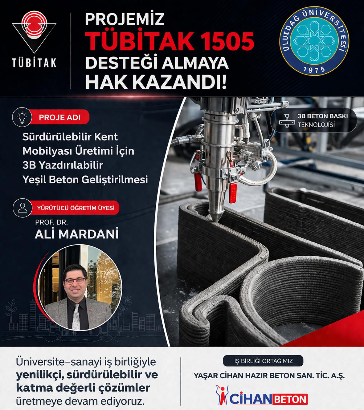 Prof. Dr. Ali Mardani Yürütücülüğündeki "3B Yeşil Beton" Projesine TÜBİTAK Desteği
