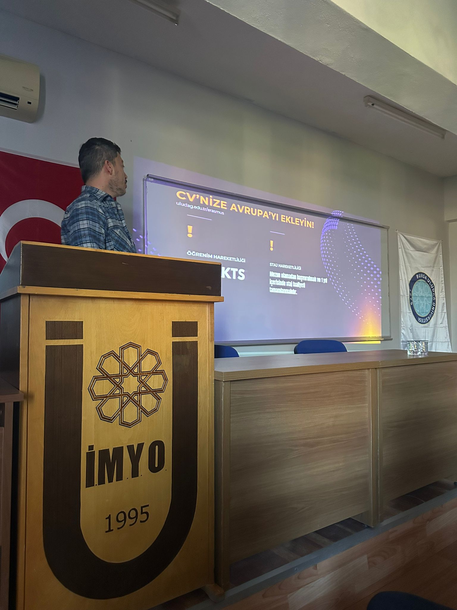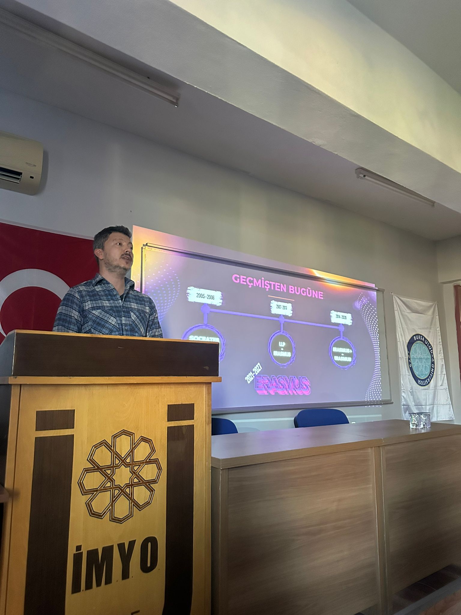 Bursa Uludağ Üniversitesi Erasmus+ Koordinatörlüğü tarafından, 16 Aralık 2025 tarihinde okulumuz öğrencilerine yönelik Erasmus+ Bilgilendirme Semineri düzenlenmiştir. Toplantı, Erasmus Koordinatörlüğü Proje Uzmanı Dr. Apti Onuk tarafından gerçekleştirilmiştir.