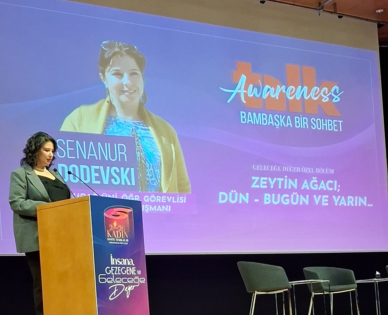 Her yıl 8 Mart Dünya Kadınlar Günü kapsamında düzenlenen ve bu yıl “İnsana, Gezegene ve Geleceğe Değer” temasıyla gerçekleştirilen etkinlikte Dodevski, “Zeytin Ağacı: Dün – Bugün ve Yarın” başlıklı sunumuyla ödülün taşıdığı sembolik anlamı katılımcılarla paylaştı.