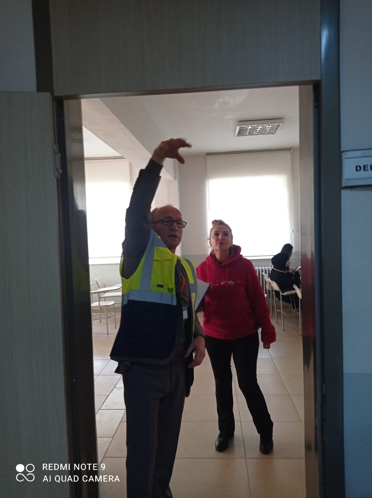 Toplantının sonrası İSG uzmanı Metin GÜLŞEN tarafından Eğitim binası ve İdari Bina ayrıca okul çevresine kapsamlı bir İSG inceleme gezisi gerçekleştirildi. Ziyaret sırasında çalışma alanları, bilgisayar ve gıda laboratuvarları ve ortak kullanım alanlarında güvenlik önlemleri yerinde değerlendirilmiş, iyileştirme ve geliştirme önerilerinde bulunulmuştur.