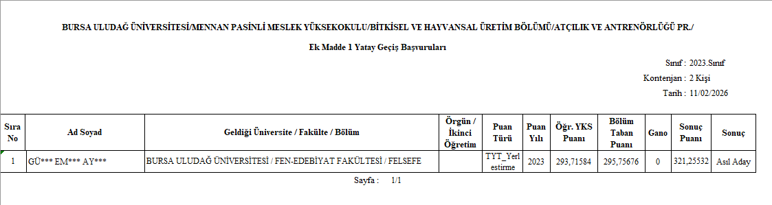 2025-2026 BAHAR YARIYILI KURUMLAR ARASI YATAY GEÇİŞ VE EK-1 MADDE SONUÇ İLANI