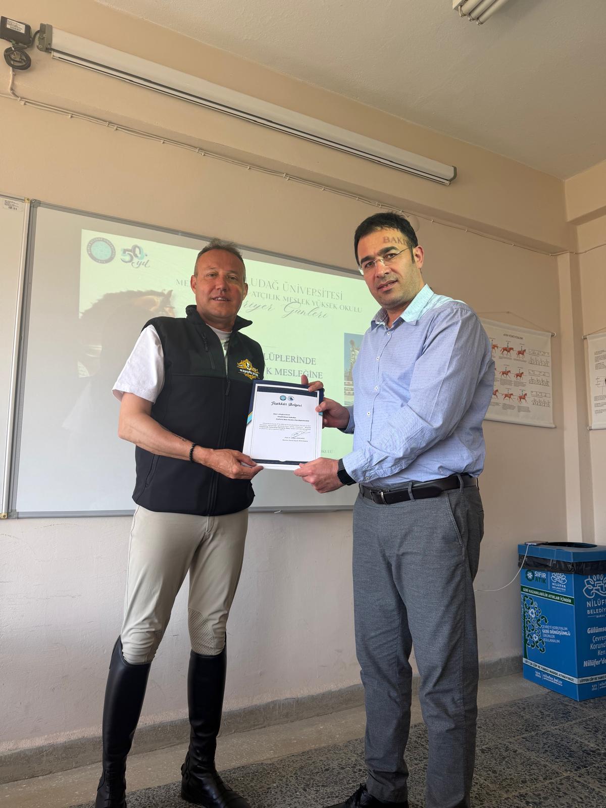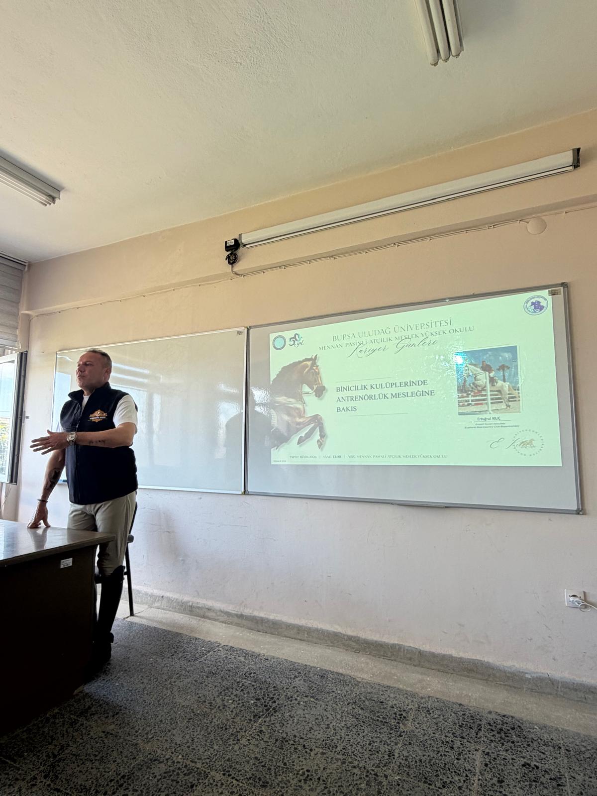 Bursa Uludağ Üniversitesi Mennan Pasinli Atçılık Meslek Yüksekokulu, Kariyer Günleri kapsamında binicilik dünyasının disiplin ve tecrübeyi harmanlayan önemli bir ismini ağırladı: Emekli Süvari Astsubay ve Euphoria Boss Country Club Başantrenörü Ertuğrul Kılıç.