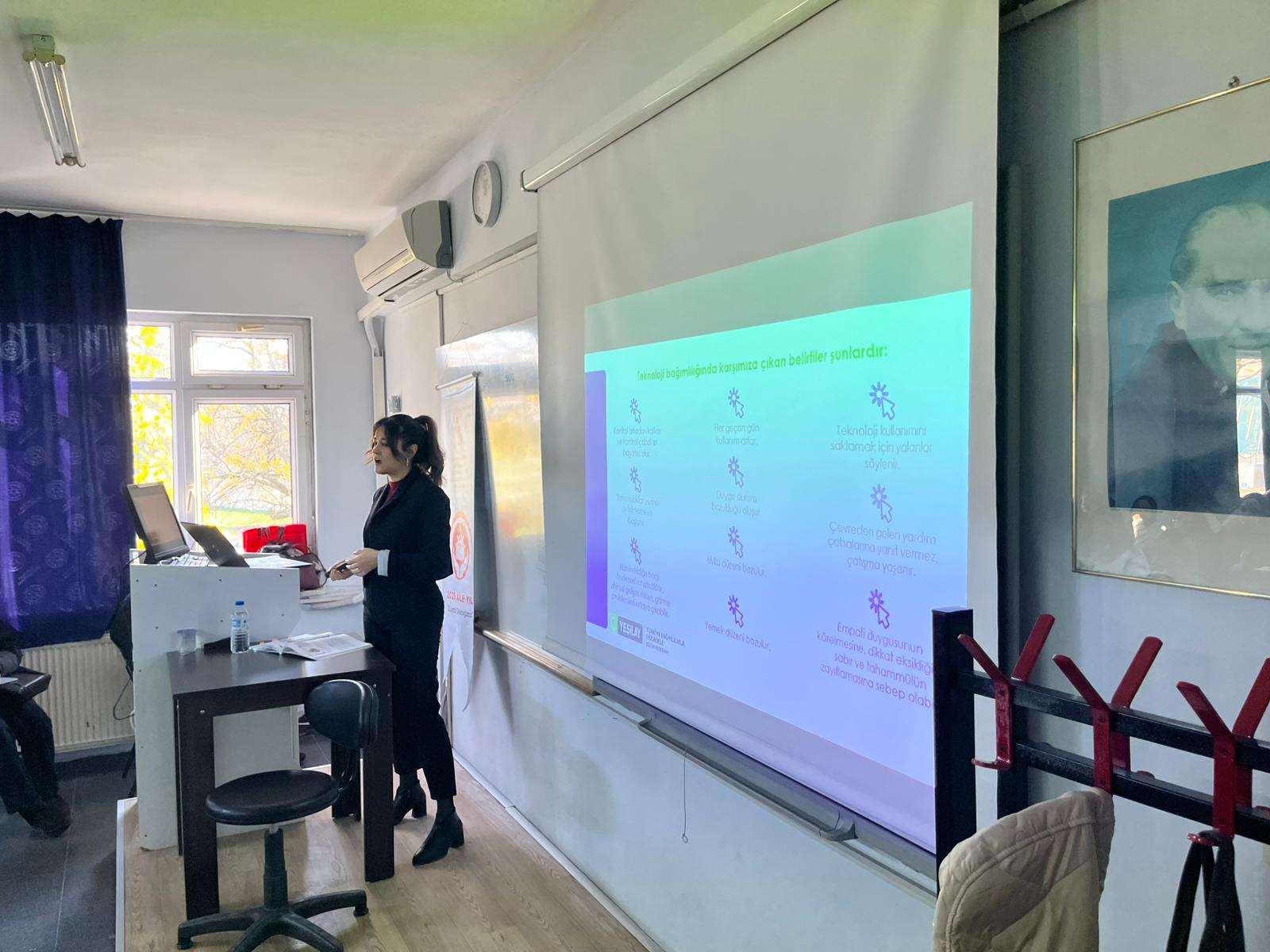 Bursa Uludağ Üniversitesi Mustafakemalpaşa Meslek Yüksekokulu’nda (MYO) teknoloji bağımlılığına dikkat çekmek ve farkındalığı artırmak amacıyla bilgilendirme etkinliği gerçekleştirildi. Etkinliğin konuşmacısı, Mustafakemalpaşa Sosyal Hizmet Merkezi’nde görev yapan Sosyal Çalışmacı Yağmur Kancılar oldu. Kancılar, günümüzde ekran, sosyal medya ve dijital oyun kullanımının gündelik hayatın doğal bir parçası haline geldiğini, ancak kontrol kaybı yaşandığında bunun bireyin akademik başarısından aile ilişkilerine, sosyal yaşamdan psikolojik iyi oluşa kadar pek çok alanda olumsuz sonuçlar doğurabildiğini ifade etti.