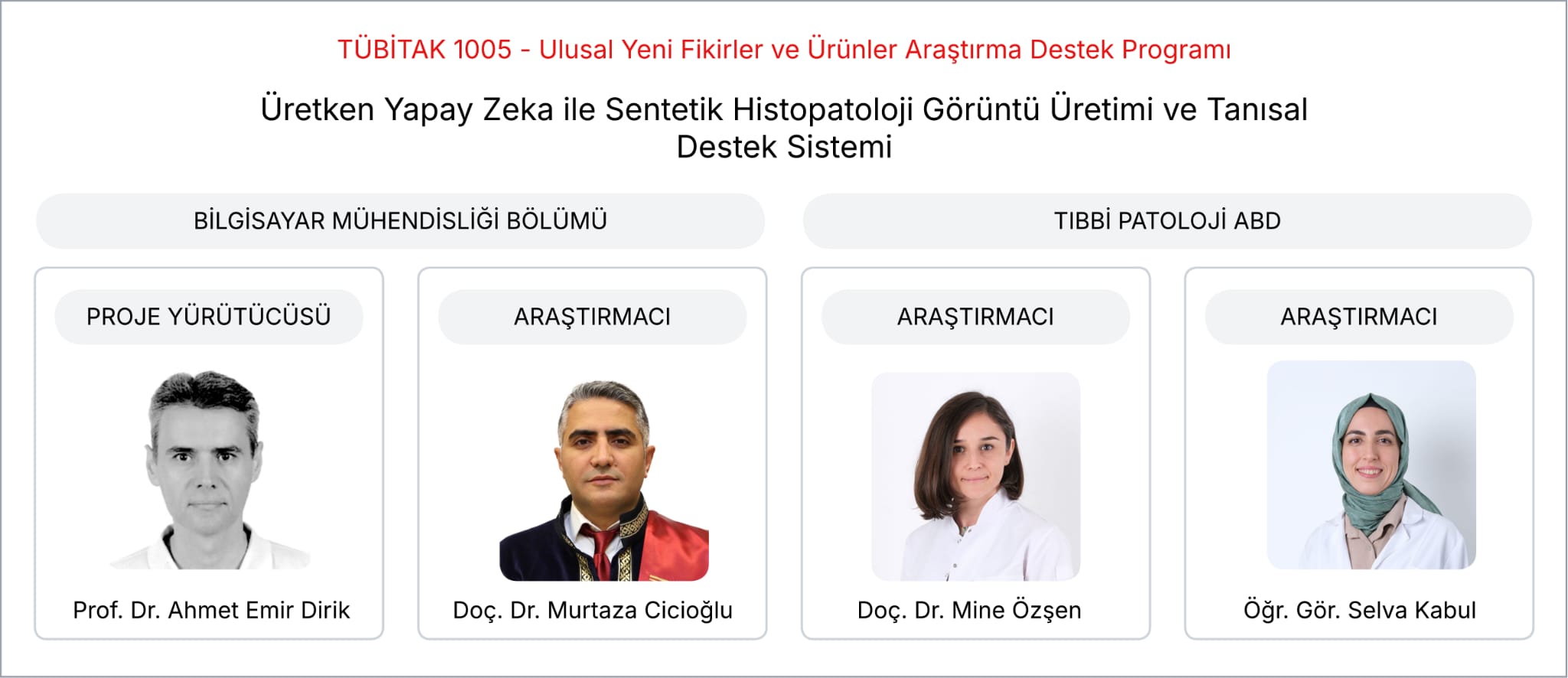Mühendislik Fakültesi, Bilgisayar Mühendisliği Bölümü öğretim üyesi Prof. Dr. Ahmet Emir Dirik yürütücülüğünde hazırlanan 125E484 numaralı "Üretken Yapay Zeka ile Sentetik Histopatoloji Görüntü Üretimi ve Tanısal Destek Sistemi" adlı bilimsel araştırma projesi TÜBİTAK 1005, Ulusal Yeni Fikirler ve Ürünler Araştırma Destek Programı tarafından kabul edilmiştir. Proje Uludağ Üniversitesi Bilgisayar Mühendisliği Bölümü ile Tıp Fakültesi Tıbbi Patoloji Anabilim Dalı ile birlikte gerçekleştirilecektir. Bu proje kapsamında prostat ve meme kanserleri için histopatoloji görüntüleri üzerinden otomatik tanı koyabilen yapay zeka tabanlı bir karar destek sistemi geliştirilecektir. İlave olarak kanser tanısına yönelik olarak histopatoloji görüntülerinin sentetik üretimini gerçekleştiren özel bir yazılım modülü de geliştirilecektir. Proje kapsamında tıbbi sentetik veri üretimi için Difüzyon Modelleri, Dönüştürücü (Transformer) mimarileri ve Büyük Dil Modelleri (LLM) gibi ileri derin öğrenme tekniklerini birleştiren hibrit bir üretken yapay zeka mimarisi önerilmektedir.