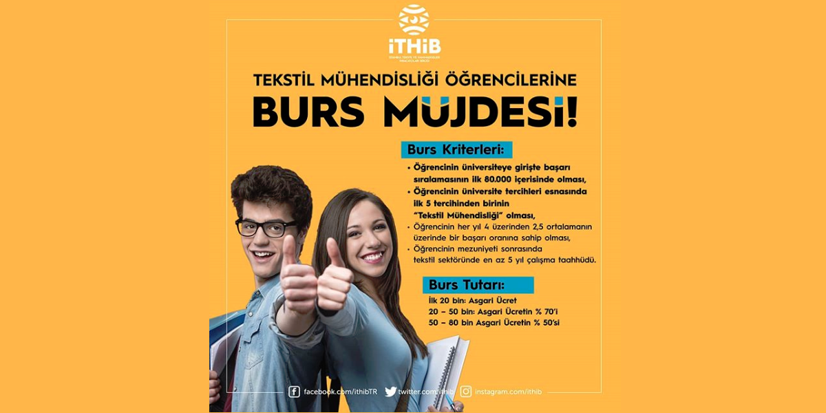 Tekstil, hazir giyim, deri ihracatçi birlikleri ve tekstil sanayi isverenleri sendikasi ile YÖK arasinda imzalanan protokole göre üniversite sinavinda ilk 20 bine giren ögrenciler, tekstil mühendisligini tercih etmeleri durumunda her ay net asgari ücret tutarinda karsiliksiz burs imkânindan faydalanacak. Sinavda 20–50 bin arasinda yer alan ögrenciler net asgari ücretin yüzde 70'i, 50–80 bin arasindaki ögrenciler ise net asgari ücretin yüzde 50'si oraninda karsiliksiz burs alabilecekler.