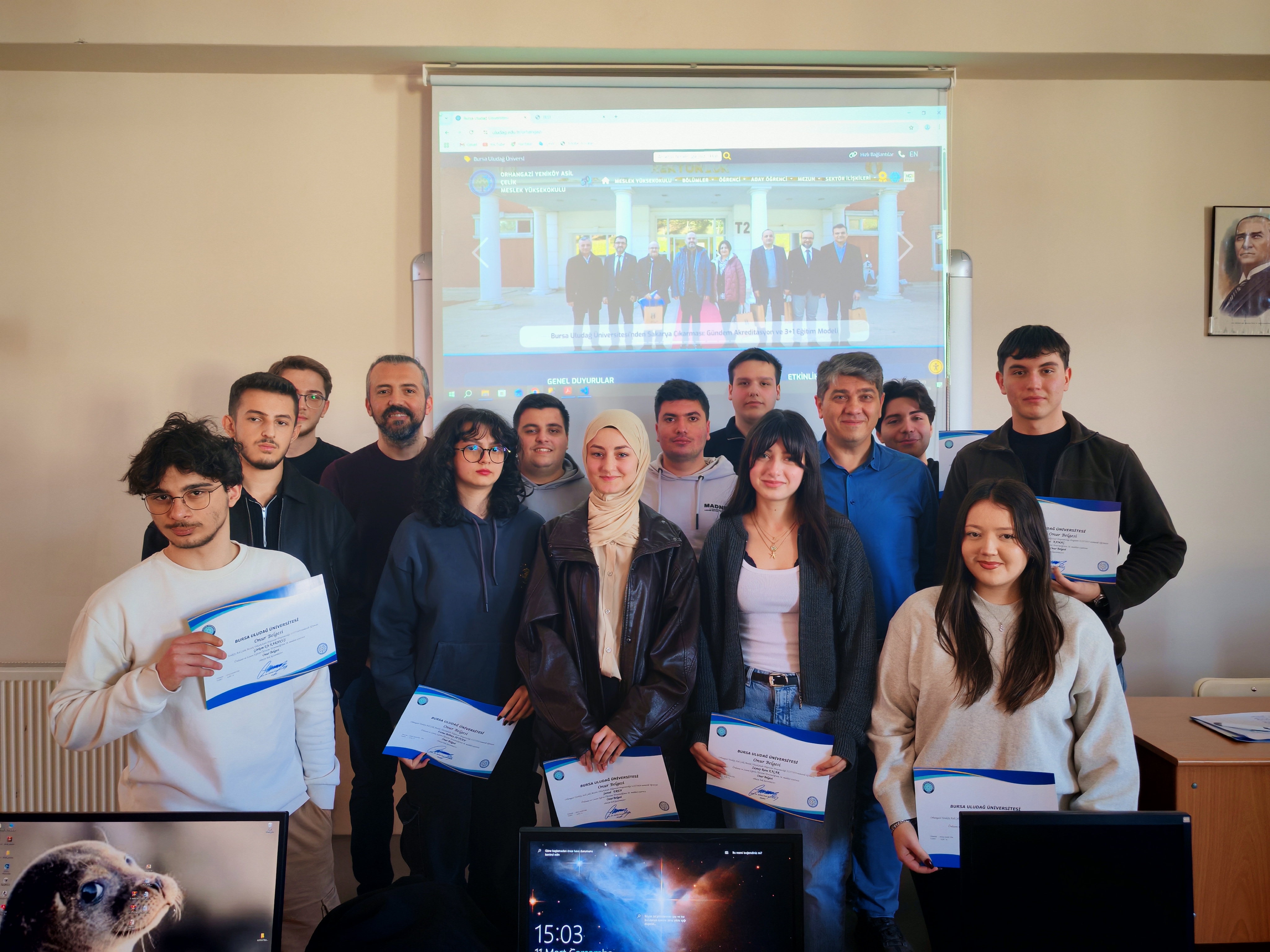 Öğrencilerin yoğun çalışma tempolarının ve disiplinlerinin bir karşılığı olan bu belgeler, aynı zamanda gelecekteki bilişim kariyerleri için de önemli bir motivasyon kaynağı oldu. Gurur dolu anlara sahne olan tören, belge takdiminin ardından akademisyenler ve öğrencilerin birlikte çektirdiği hatıra fotoğrafları ile sona erdi.