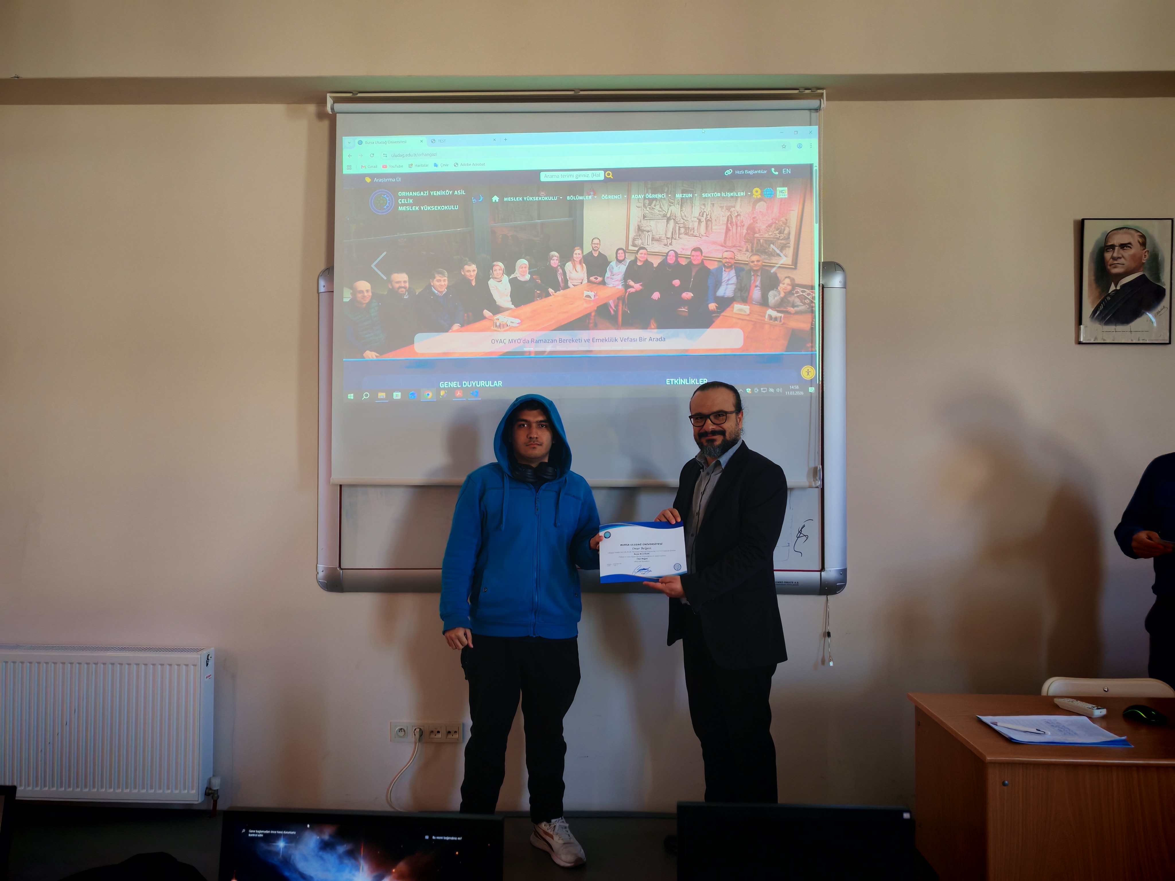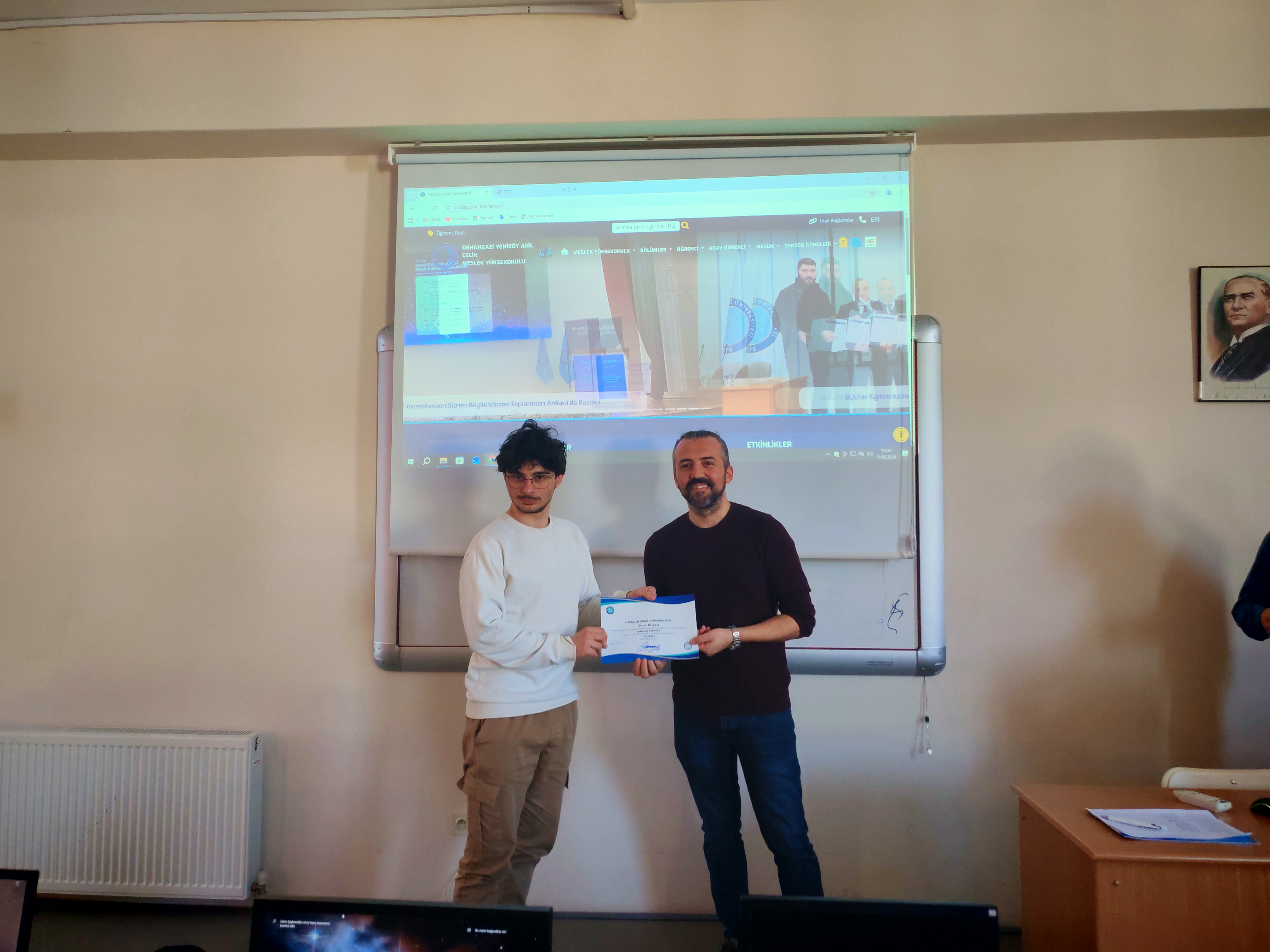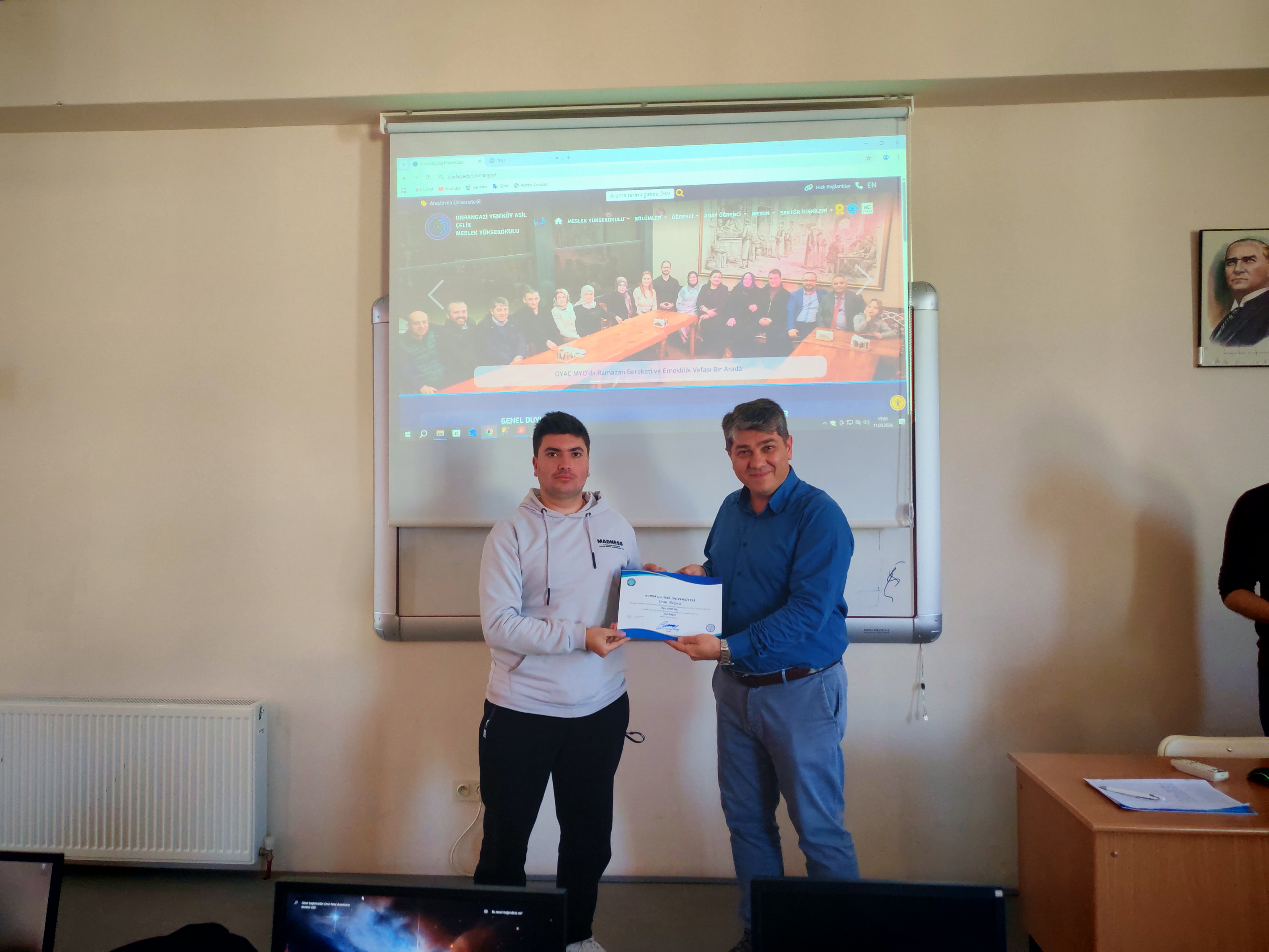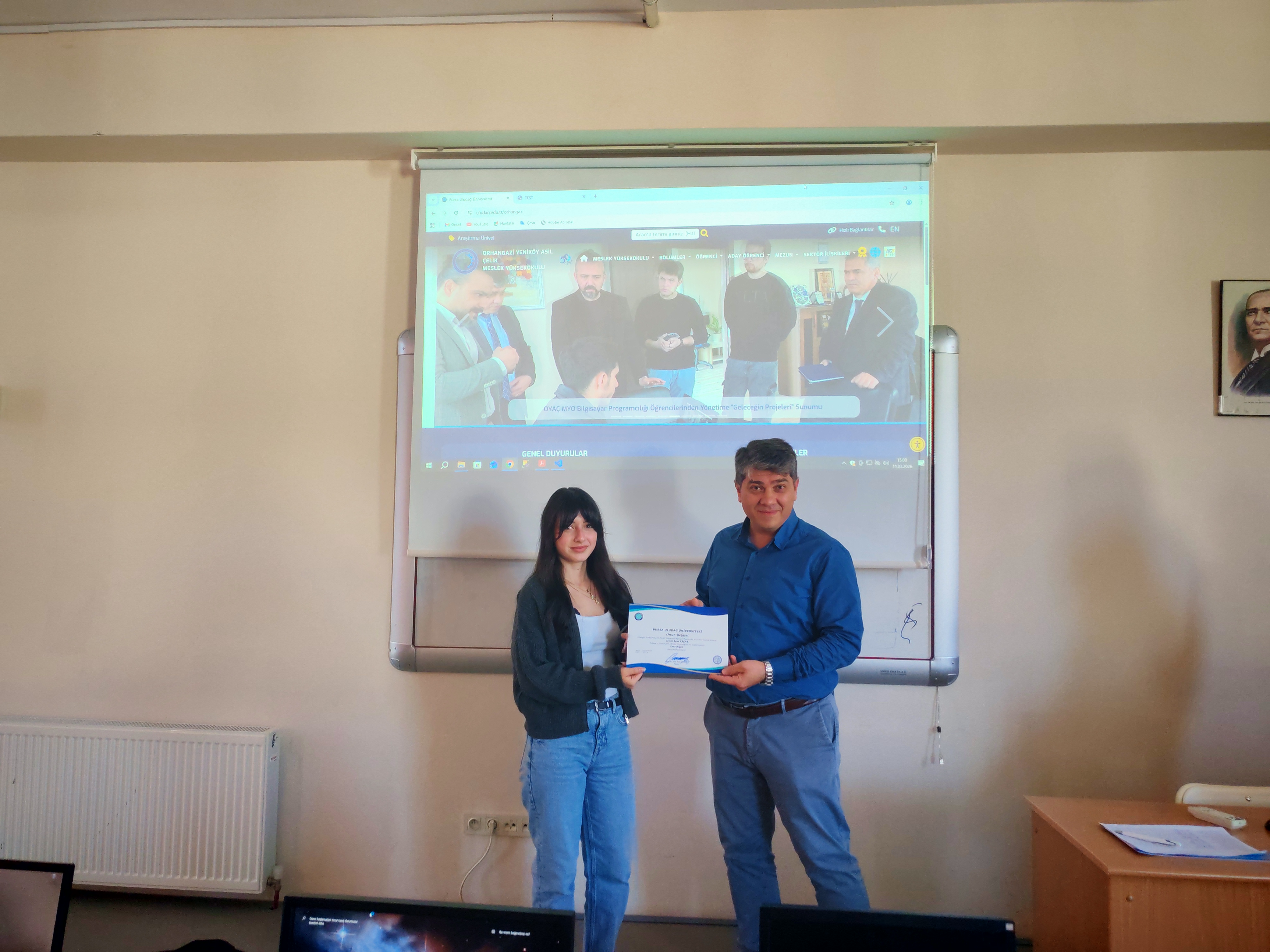 OYAÇ MYO bünyesinde eğitim veren Bilgisayar Programcılığı Programı'nda, geçtiğimiz güz dönemindeki akademik not ortalamalarına göre Yüksek Onur ve Onur Belgesi almaya hak kazanan başarılı öğrenciler için anlamlı bir belge takdim töreni gerçekleştirildi.