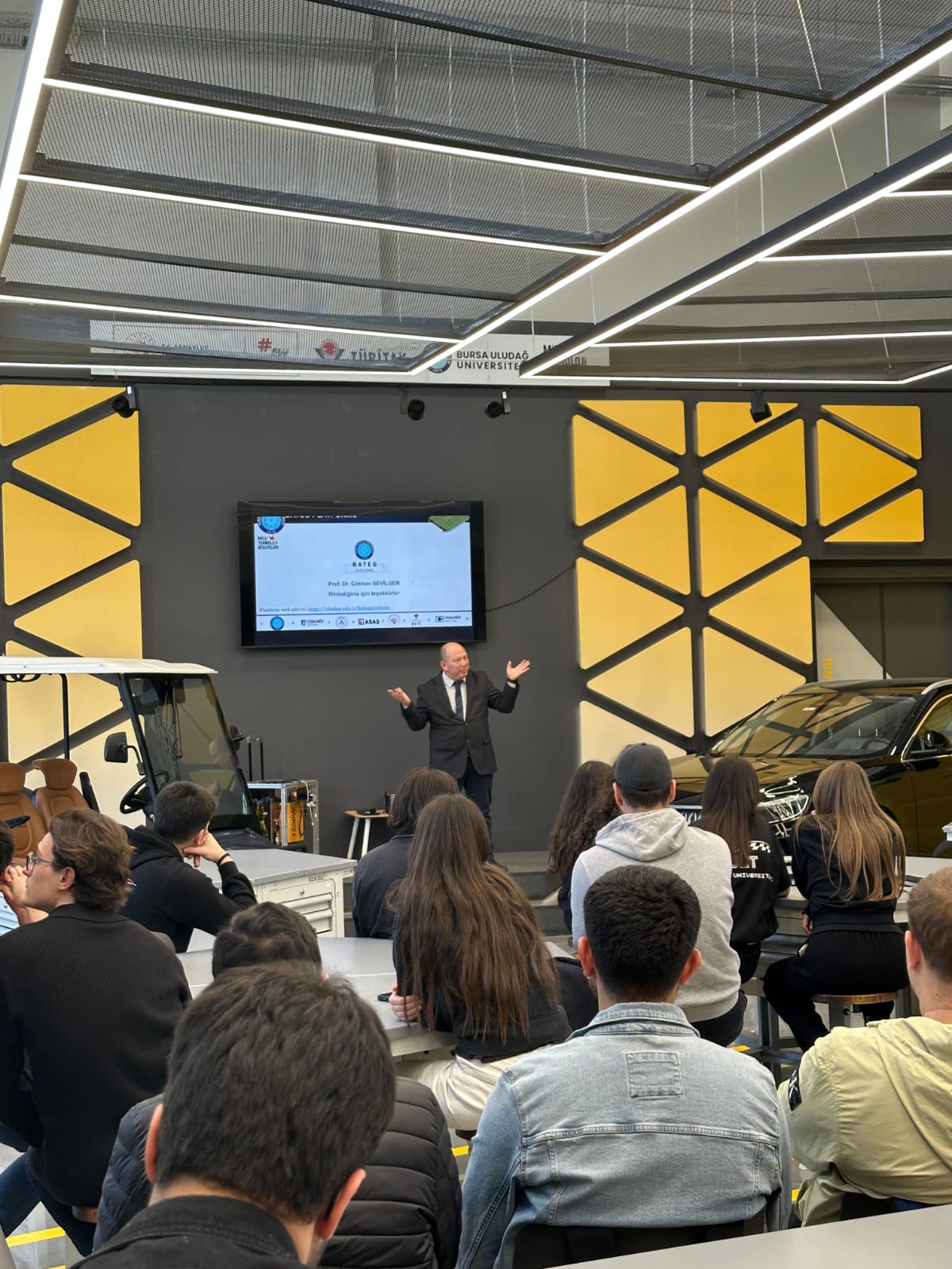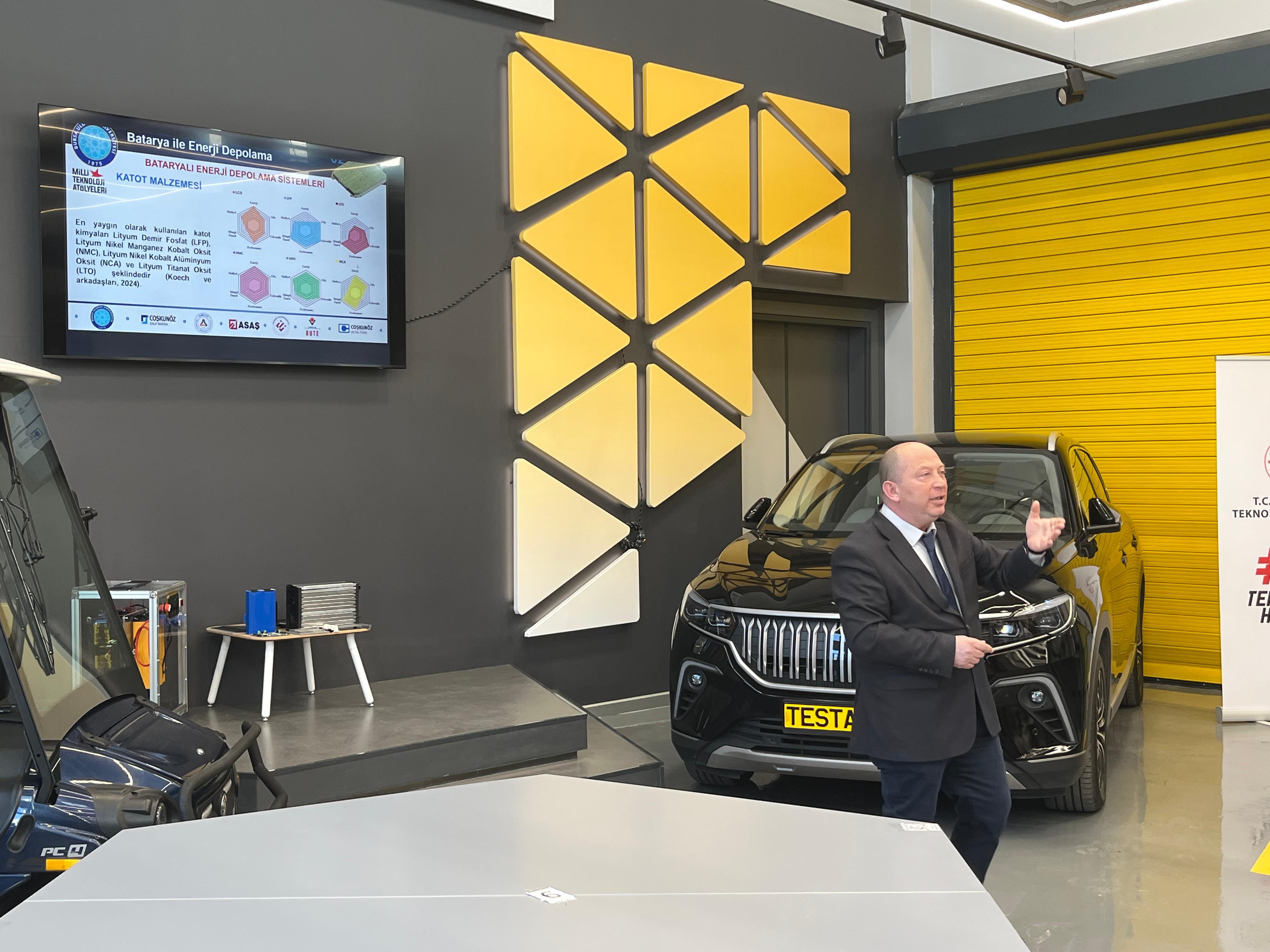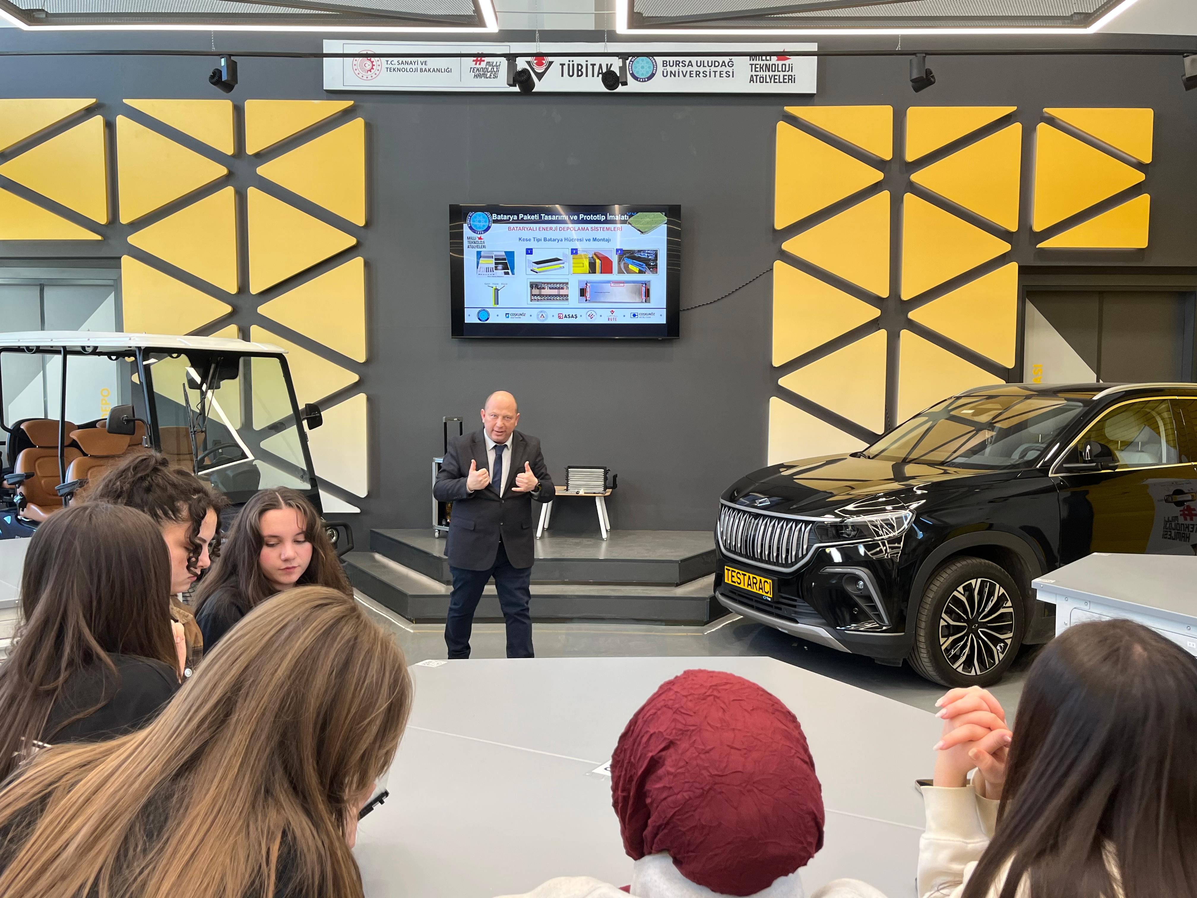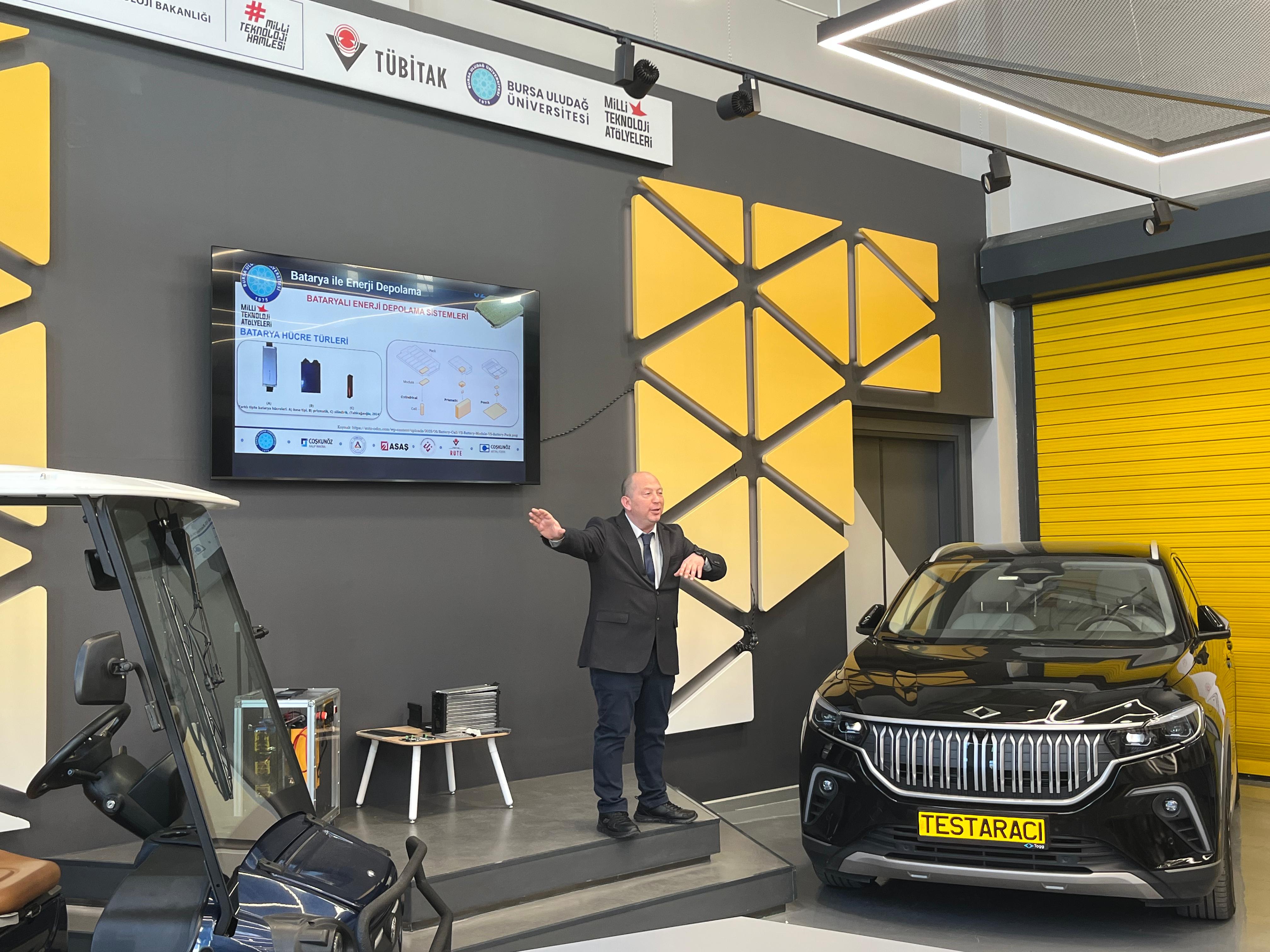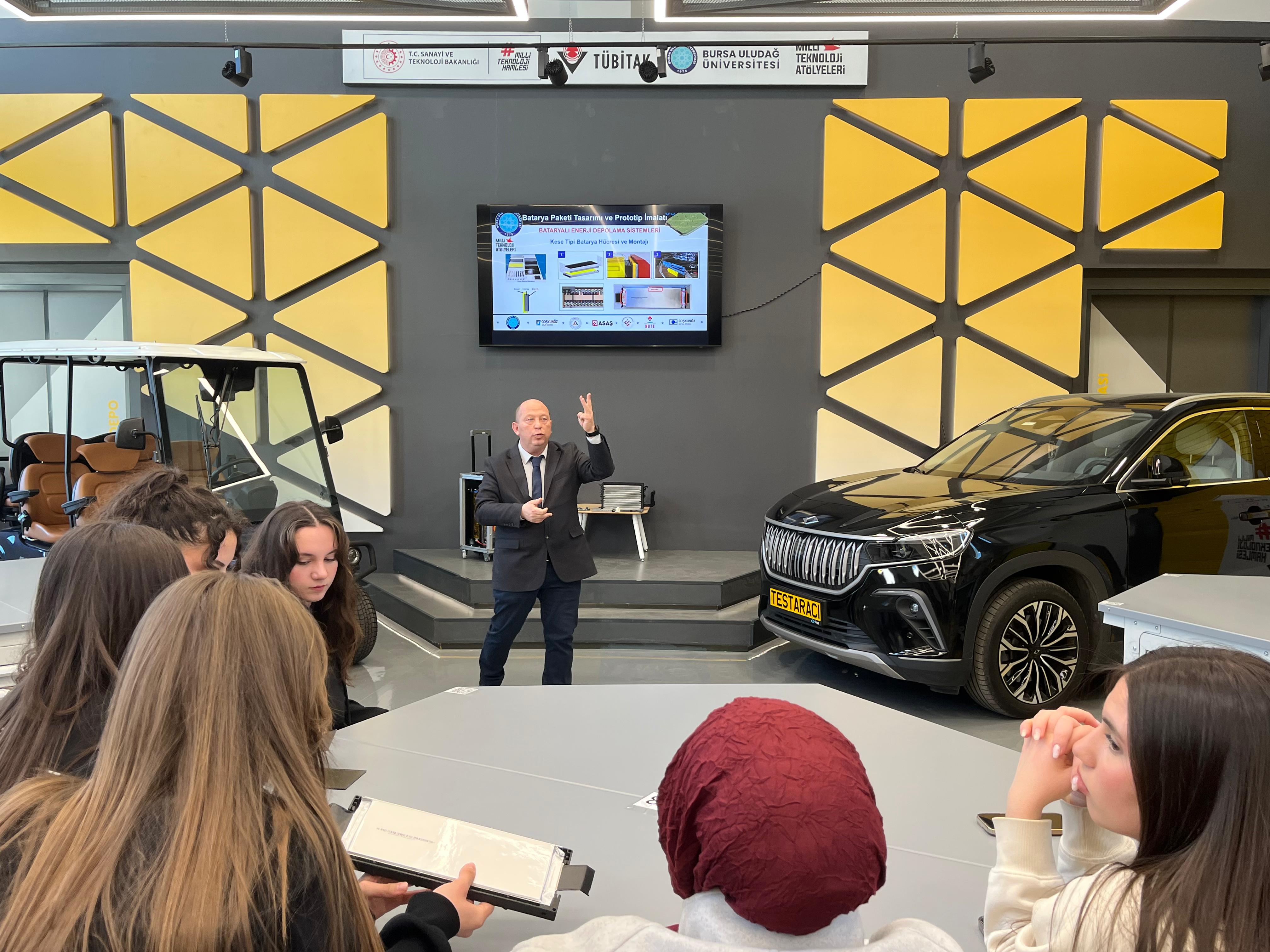 T.C. Sanayi ve Teknoloji Bakanlığı koordinasyonunda yürütülen Milli Teknoloji Hamlesi kapsamında, TÜBİTAK iş birliğiyle düzenlenen etkinlikler çerçevesinde Bilim ve Teknoloji Haftası'nın açılışı Bursa Uludağ Üniversitesi Mühendislik Fakültesi Dekanı Sayın Prof.Dr Ali Rıza YILDIZ'in konusmaları ile başladı. Otomotiv Mühendisliği Bölüm Başkanı ve BATEG Platformu Yürütücüsü Sayın Prof. Dr. Gökhan SEVİLGEN’in “Enerji Depolama Teknolojileri” başlıklı söyleşisi ile devam eden etkinlikte enerji depolama teknolojileri çatısı altında batarya teknolojileri hakkında hücre seviyesinden paket seviyesine kadar gerçekleştirilen mühendislik çalışmaları konusunda katılımcılar bilgilendirdi. Üniversitemiz bünyesinde kurulu olan Elektrikli Taşıtlar İçin Batarya Teknolojileri Araştırma ve Geliştirme Platformu (BATEG) Laboratuvarı altyapısı ve yetkinliklerinin de aktarıldığı söyleşi soru-cevap bölümü ile sona erdi. Etkinlikte emeği geçen herkese başta Bursa Uludağ Üniversitesi Milli Teknoloji Atölyesi Yöneticisi Hilal KARABULUT olmak üzere teşekkür ederiz.