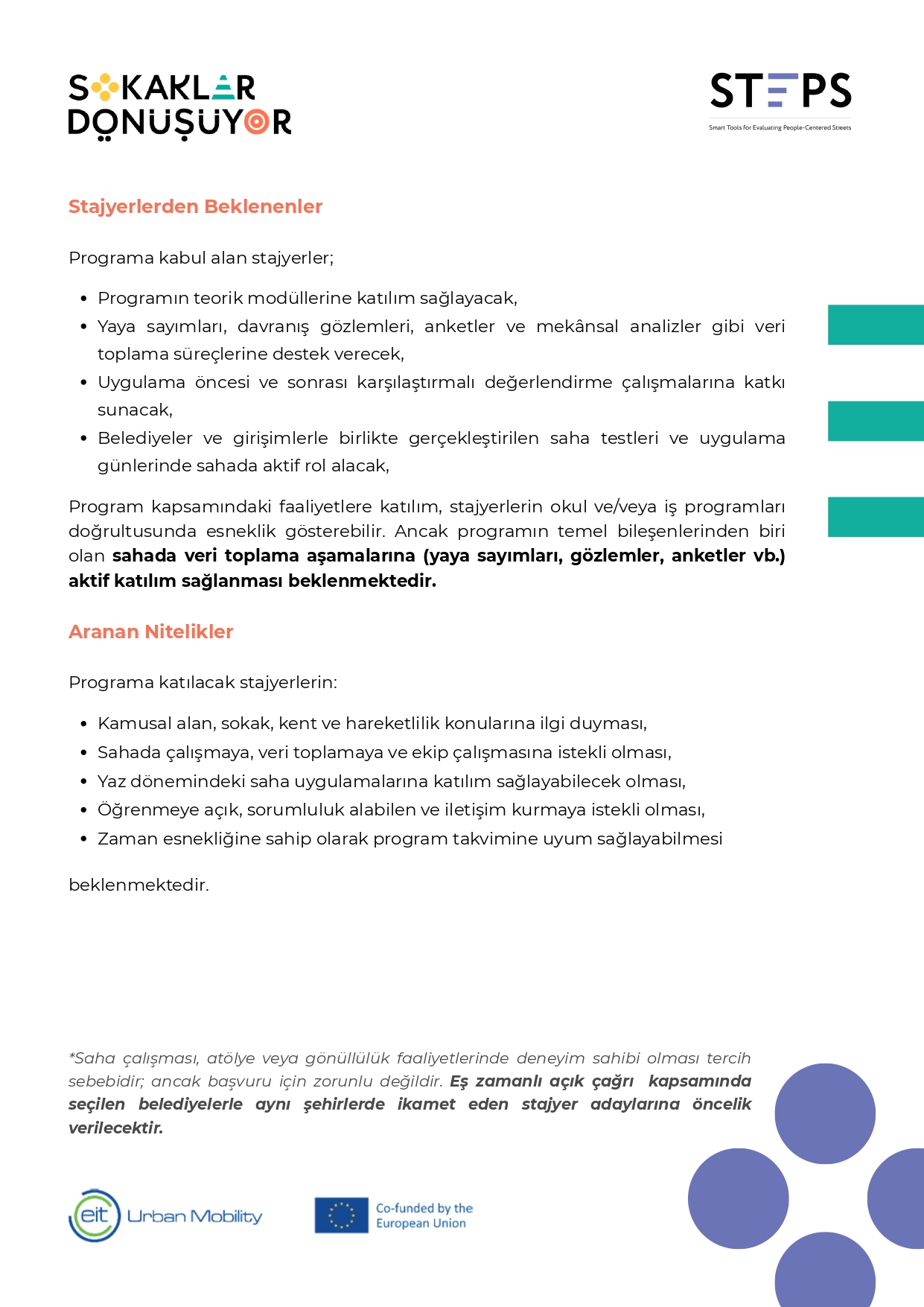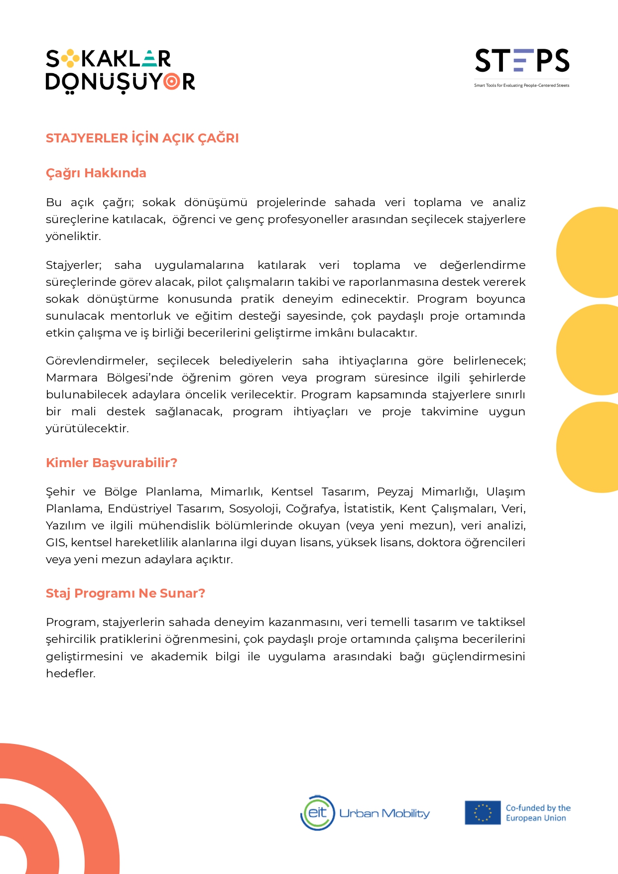 Sokaklar Dönüşüyor Programı Stajyer Duyurusu