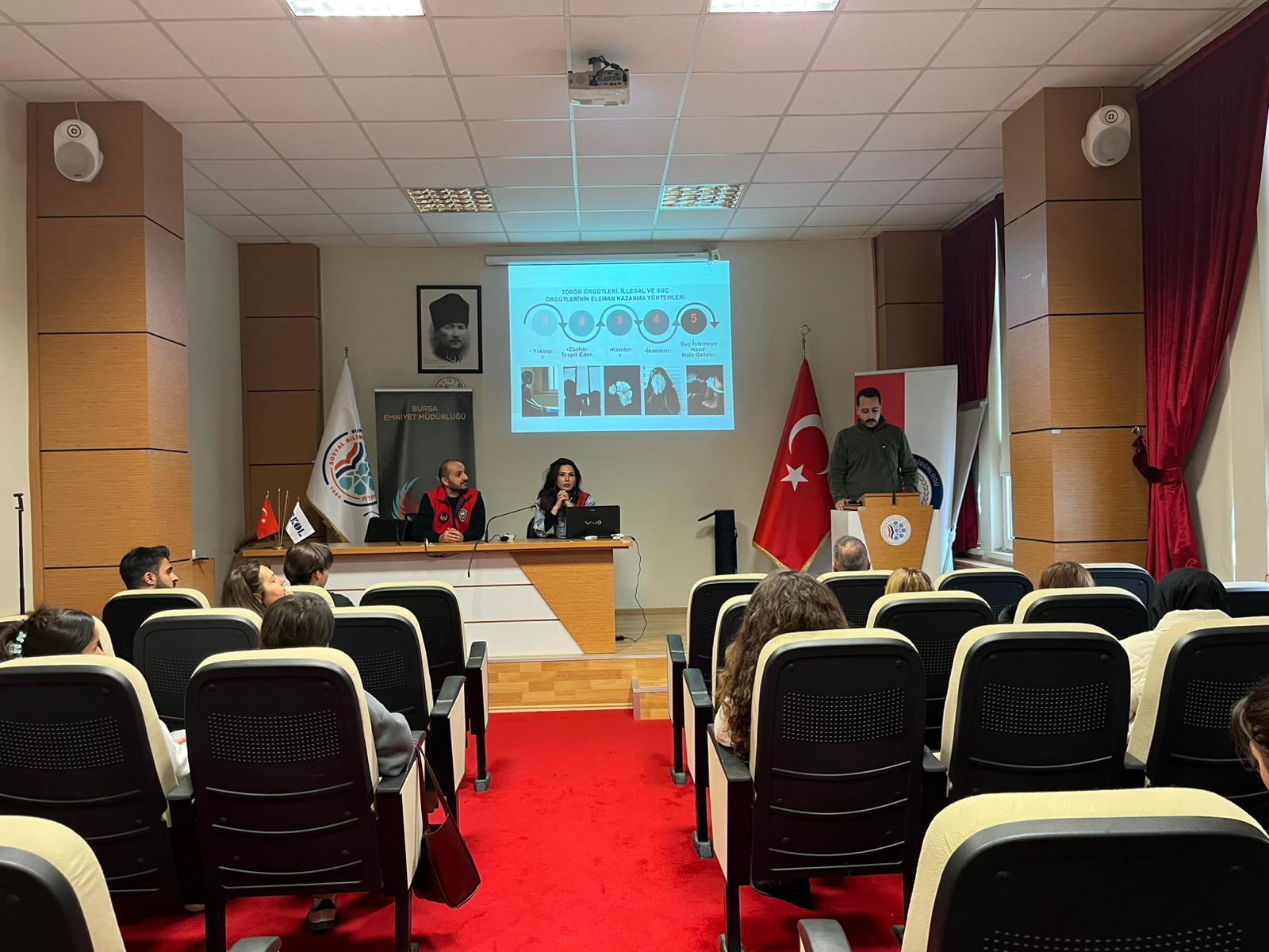 Bursa Emniyet Müdürlüğü Terörle Mücadele Şube Müdürlüğü, dijital çağda artan çevrimiçi radikalleşme risklerine dikkat çekmek amacıyla öğrenciler için bilgilendirici bir seminer gerçekleştirdi. Farkındalık Seminerleri kapsamında Bursa Emniyet Müdürlüğü Terörle Mücadele Şube Müdürlüğü Komiseri Sayın Serkan ACAR, polis memurları Sayın Ayşegül NAİR ve Sayın Mustafa Kemal DURAN, internet ortamında gençlerin karşı karşıya kaldığı tehditleri detaylı biçimde anlattı.