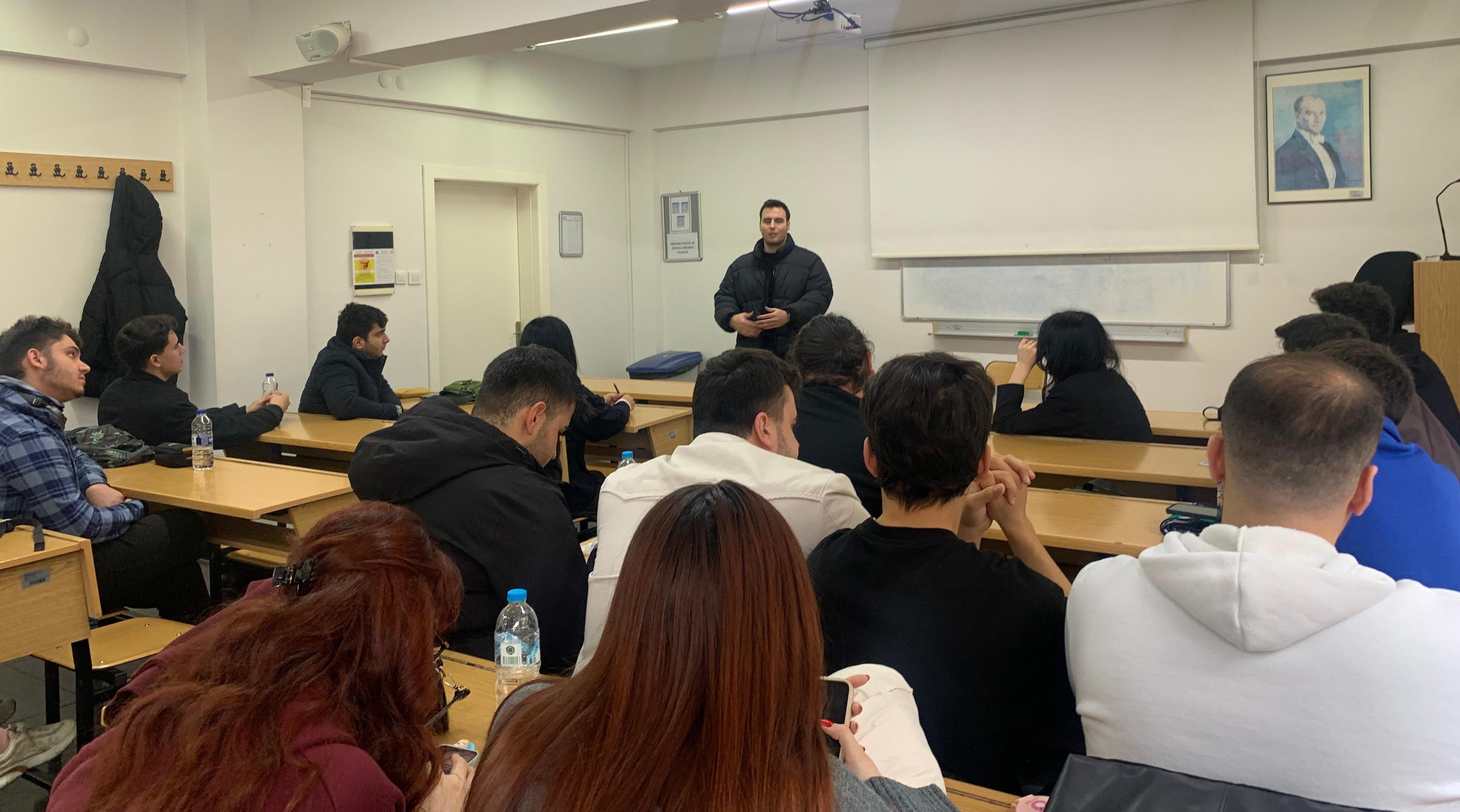 Bu kapsamda, 2024 yılı mezunu ve kamu sektöründe görev yapan Recep Karataş, 2023 yılı mezunu ve özel sektörde çalışan Seda Taşdemir, kamu hastanesinde hizmet alımı kapsamında çalışan 2023 yılı mezunu Berke Tüfekçi ve kariyerine sağlık sektörü dışında devam etmiş olan 2022 yılı mezunu Abdullah Yeşilmen Kariyer Planlama dersine konuk olmuşlardır. Konuk mezunlarımız, kamu ve özel sektördeki istihdam olanakları, çalışma koşulları, mesleki deneyimleri ve kariyer fırsatlarına ilişkin görüş ve deneyimlerini öğrencilerimizle paylaşmışlardır.
