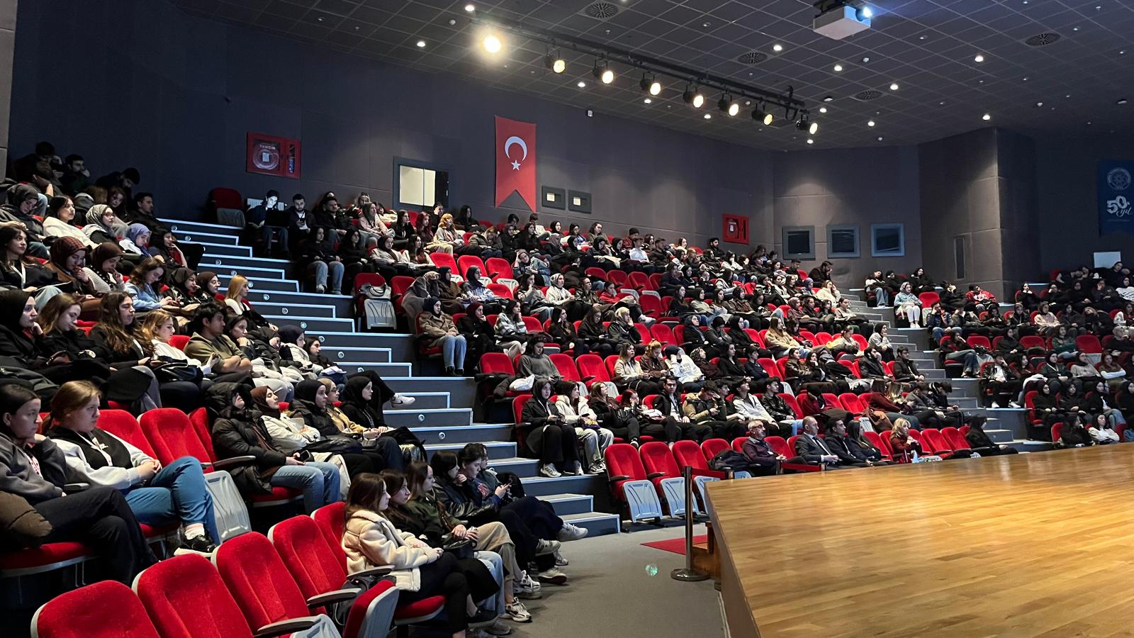 16 Mart 2026 Pazartesi günü Prof. Dr. M. Mete Cengiz Kültür Merkezi İlyas Kaygusuz Salonu’nda gerçekleştirilen seminere, Sağlık Hizmetleri Meslek Yüksekokulu 2. sınıf öğrencileri yoğun katılım gösterdi. Geçtiğimiz yıl iletişim eğitimi alan ve bahar dönemi sonunda mezun olacak öğrencilerin mesleğe başlamadan önce iletişim konusundaki bilgileri tazelendi. Sağlık Kültür ve Spor Daire Başkanlığı Gençlik Danışma Merkezinde görevli Psikolog Bahar Özdemir ve Uzman Psikolog Aslı Esin Aslan’ın sunumlarıyla gerçekleşen etkinlikte, sağlıkta iletişimin hayati önemi ve uygulama stratejileri ele alındı.