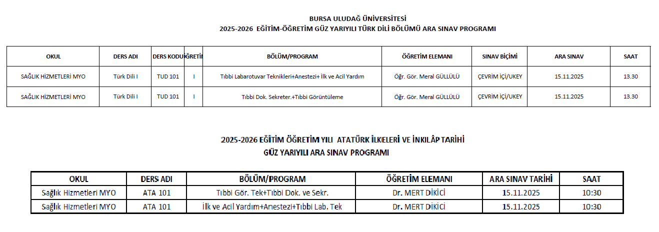 | TUD101 Türk Dili I ve ATA101 Atatürk İlkeleri ve İnkılap Tarihi I Dersleri Ara Sınav Programı (jpg) |